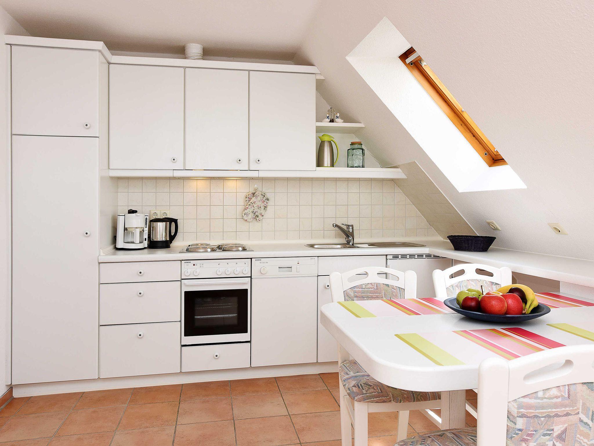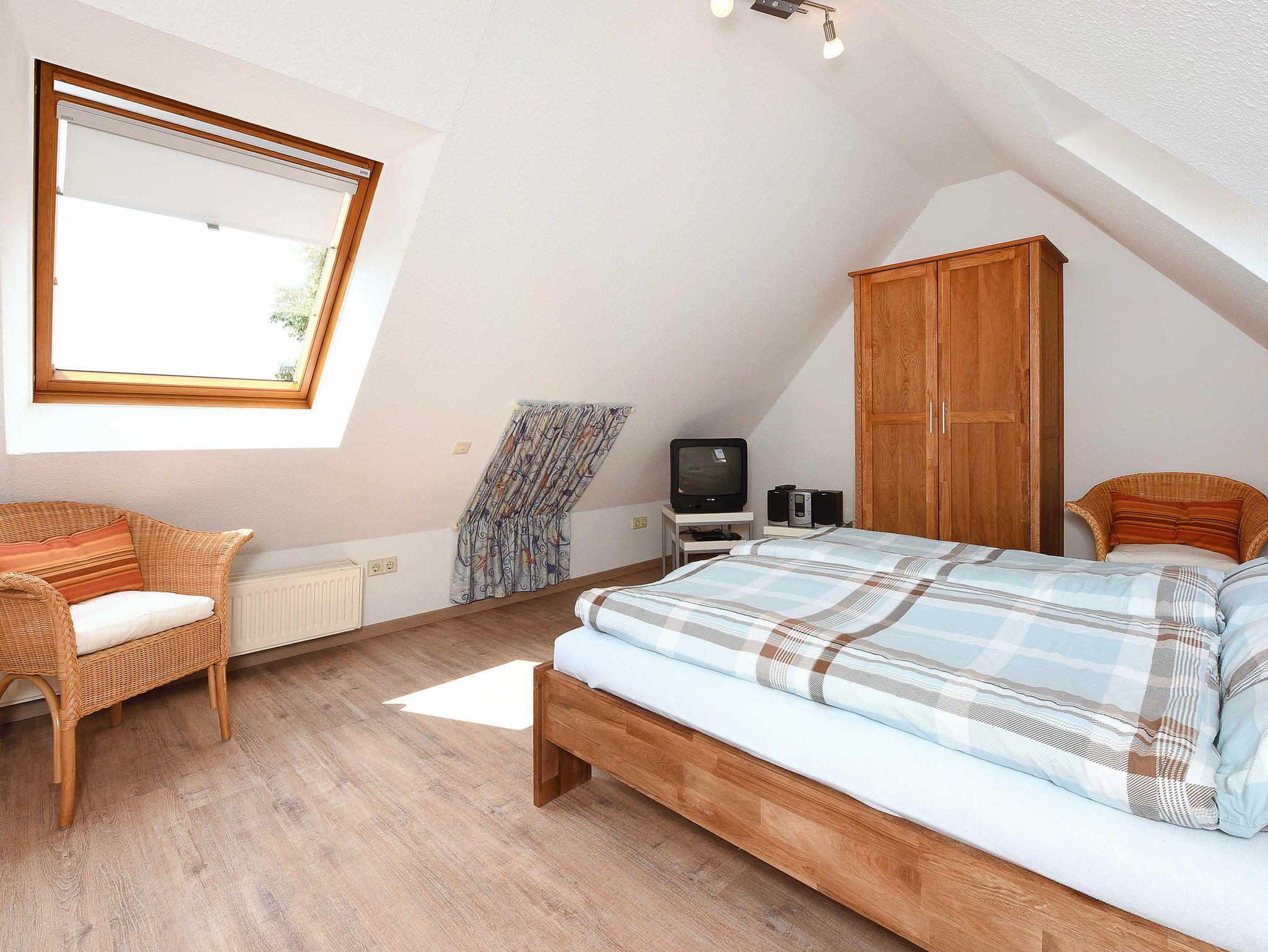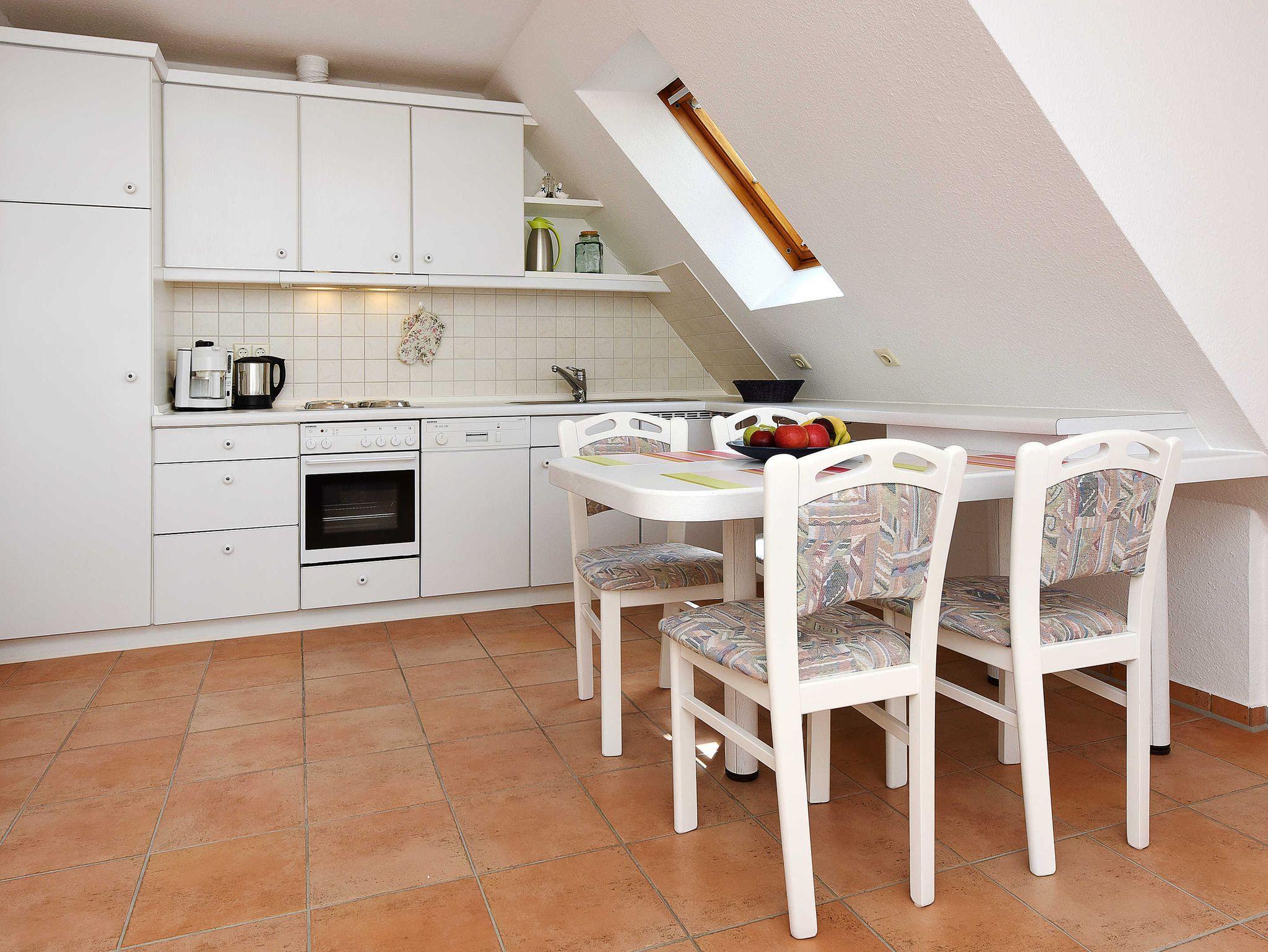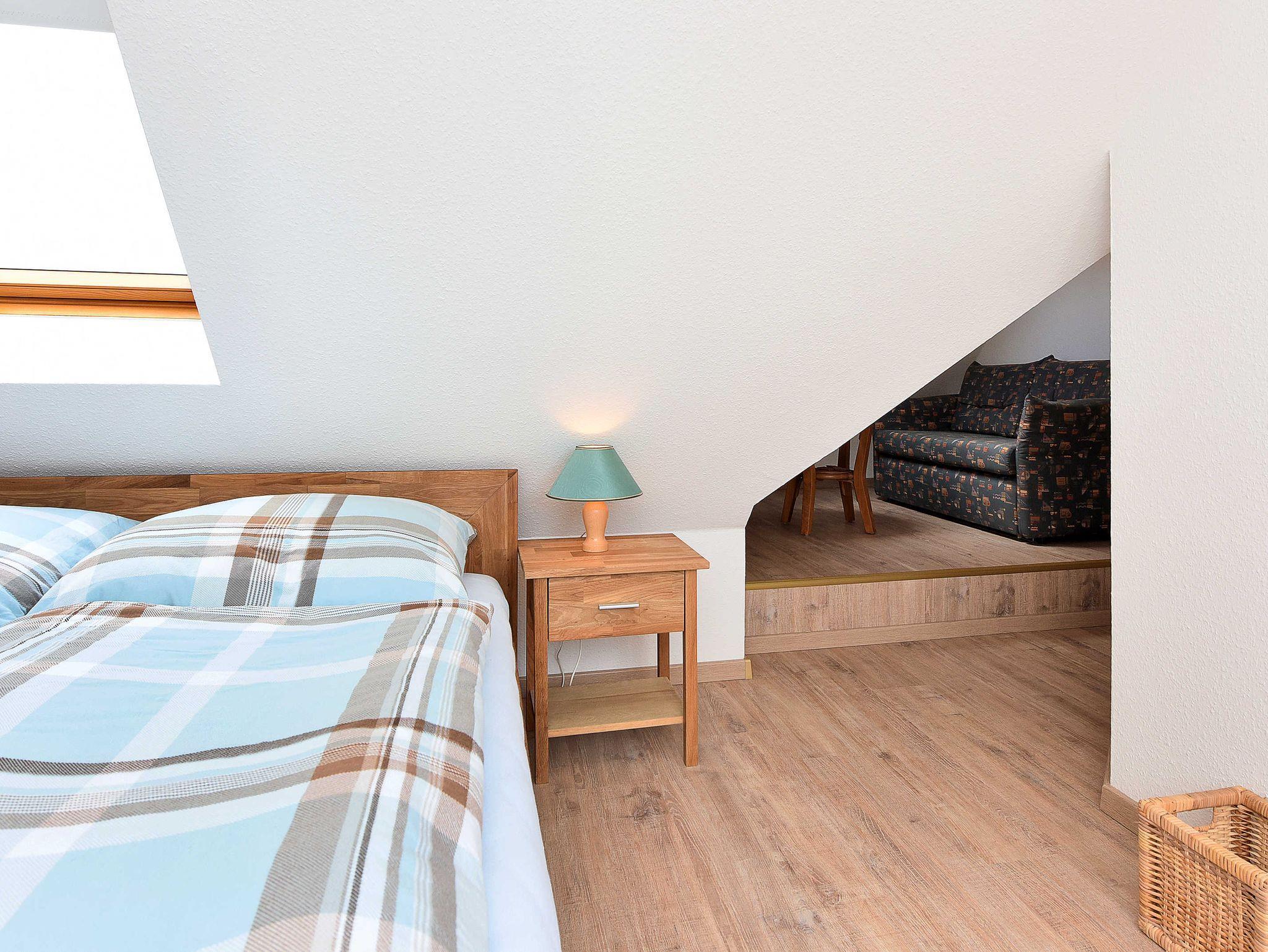 Größe ca. 60 Quadratmeter, Wohnraum mit integrierter Küche, Schlafzimmer, zweites separates Schlafzimmer, Badezimmer mit Dusche, Doppel-Waschtisch, Bidet und WC, Obergeschoss, Balkon (Richtung Süden), optimal für 2 bis 4 Personen.