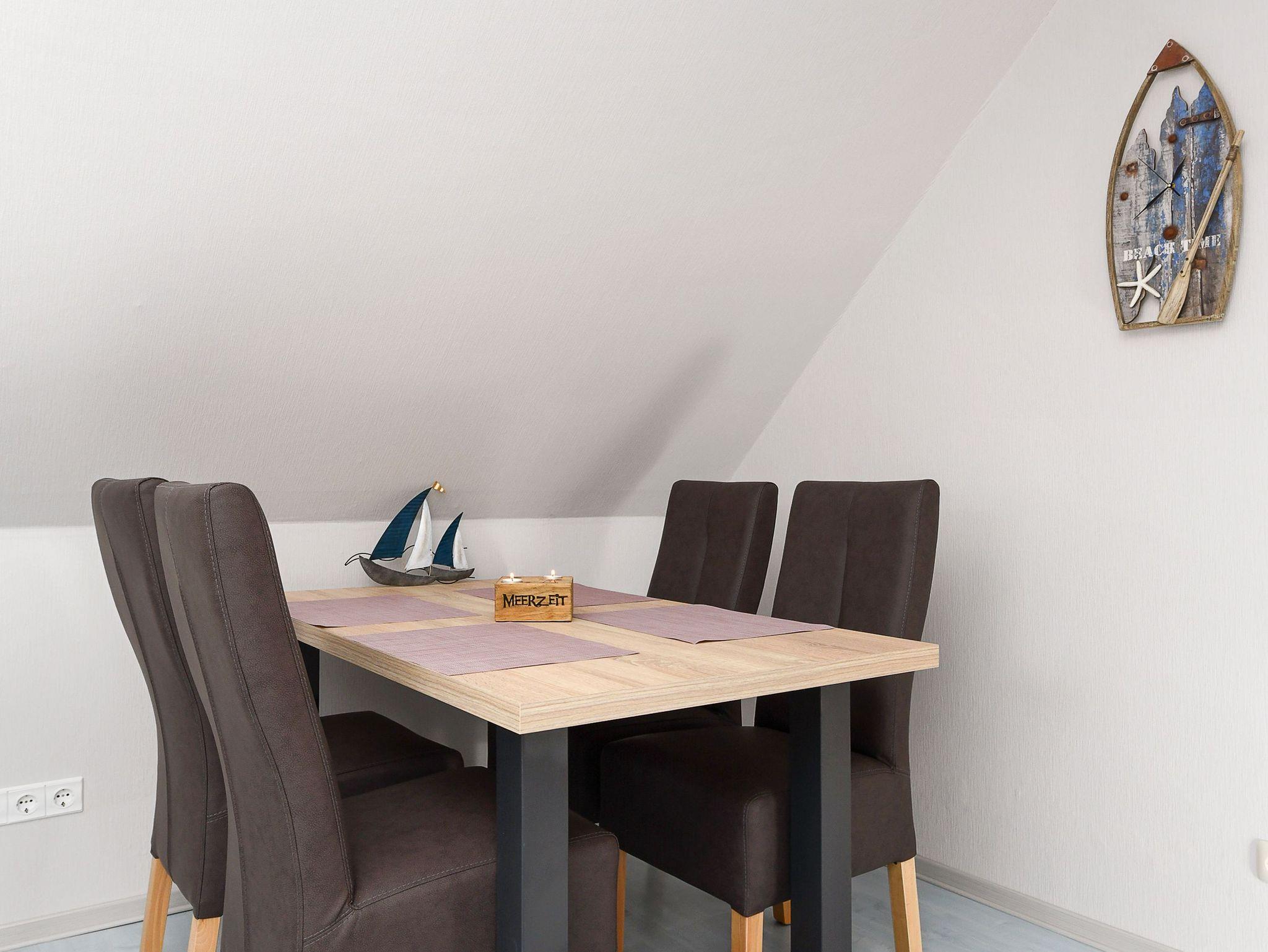 Die Ferienwohnung „Meerzeit“ befindet sich im Obergeschoss eines Einfamilienhauses. Sie ist gemütlich und freundlich gestaltet und eingerichtet sowie gut ausgestattet. Außerdem gibt es im Garten eine teilweise überdachte und möblierte Terrasse, auf der Sie, liebe Gäste, mal so richtig entspannen können.