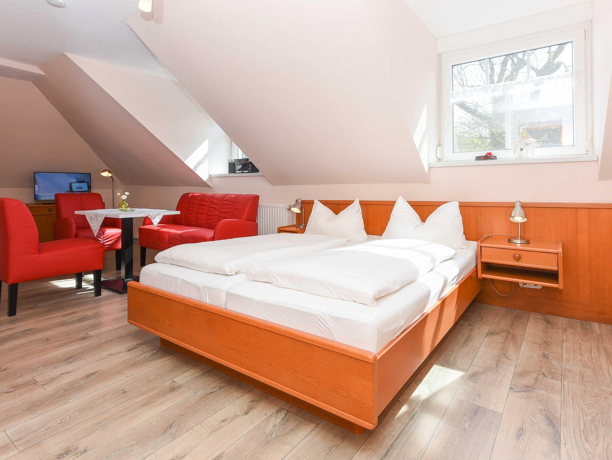 Am besten passen zwei bis drei Personen in die Doppelzimmer und Apartments. Zwei der Zimmer befinden sich in unserem Gästehaus, sind allergikergeeignet und verfügen über eigene Balkone.