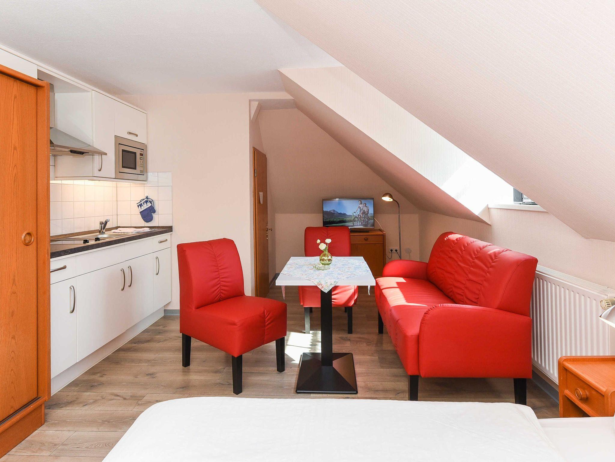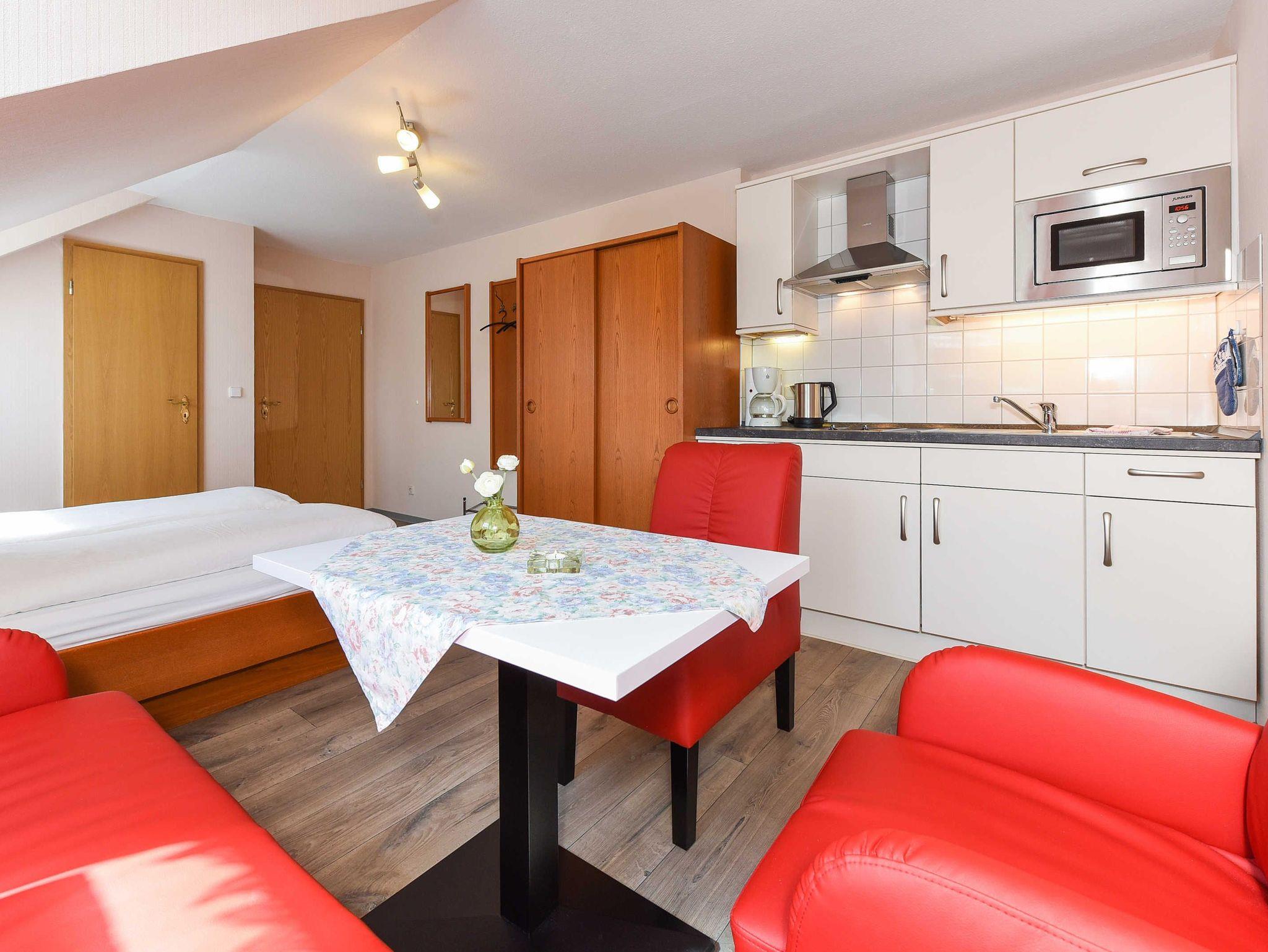 Wohn- und Schlafraum mit räumlich abgeteiltem Küchenbereich