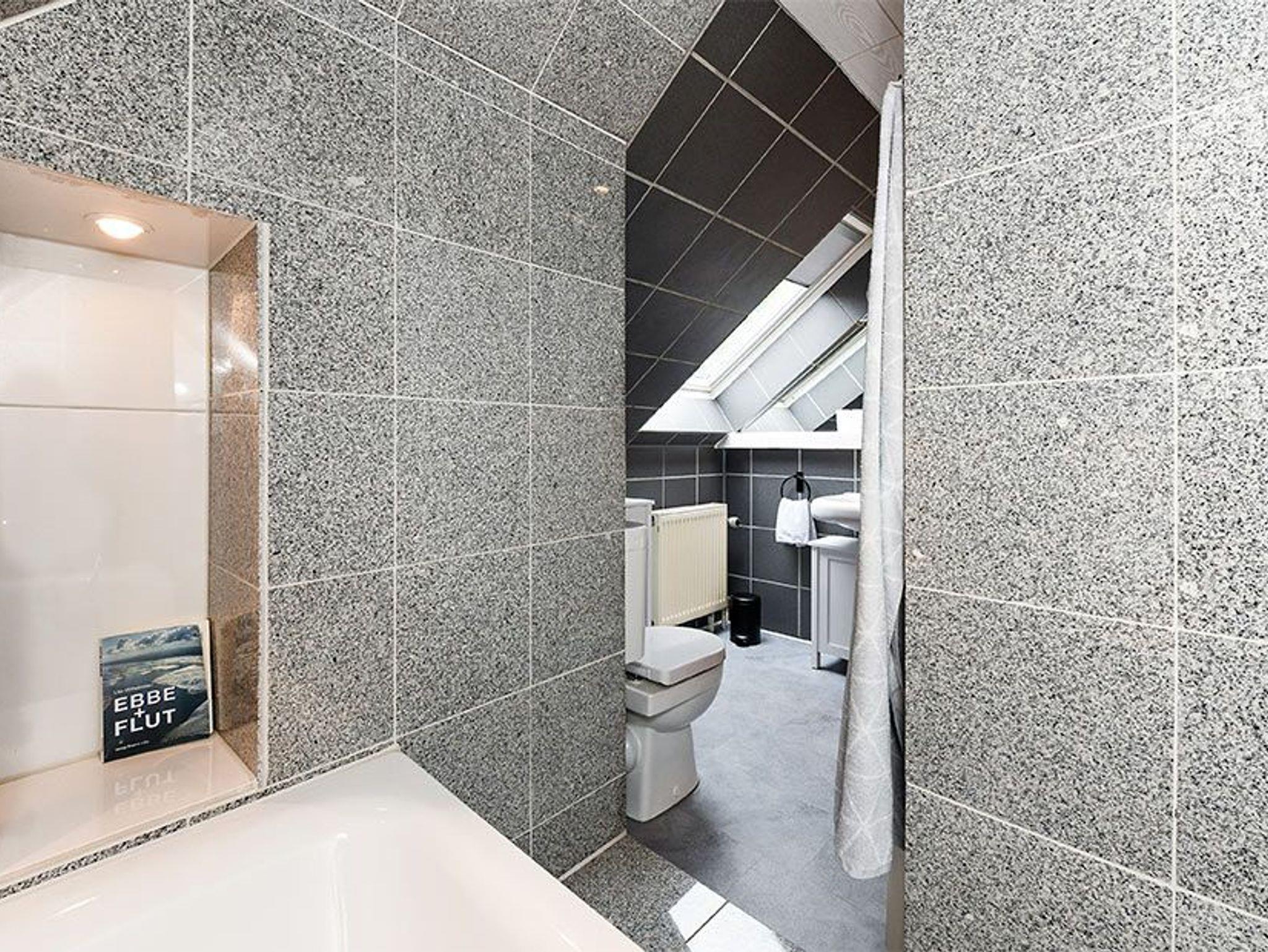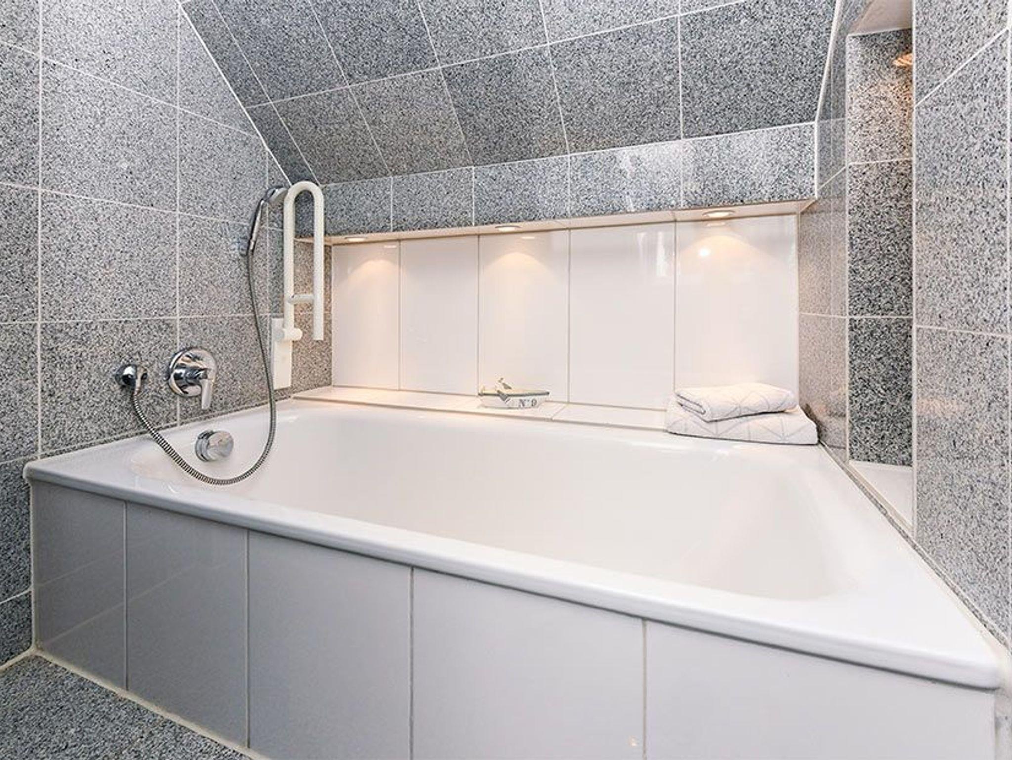 Badezimmer mit Badewanne, Dusche, Waschtisch und WC
