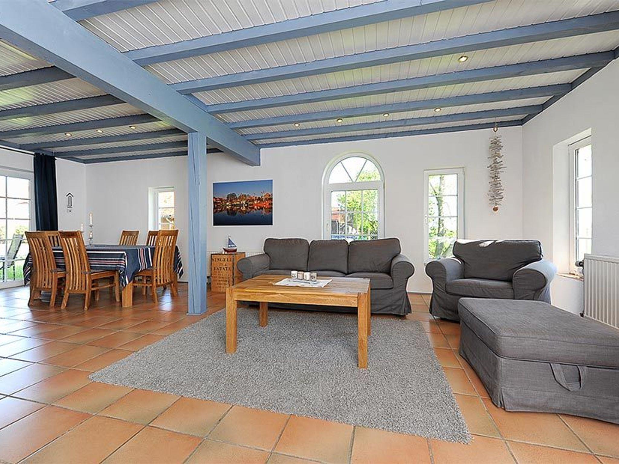 Das Ferienhaus „Huus Tide“ ist ungefähr 90 Quadratmeter groß und so für 2 bis 4 Personen nebst zusätzlichem Kleinkind bestens geeignet. Das Ferienhaus ist sehr gemütlich und großzügig gestaltet, mit freier Deckenbalkenlage und es gibt auch einen Kamin. Die Einrichtung ist sehr komfortabel und das Ferienhaus ist ausgestattet mit allem, was Sie in Ihrem Urlaub benötigen werden. An der Rückseite des Hauses liegt eine große möblierte Terrasse mit Blick in den Garten und auf die Wiesen und Felder der ostfriesischen Marsch.