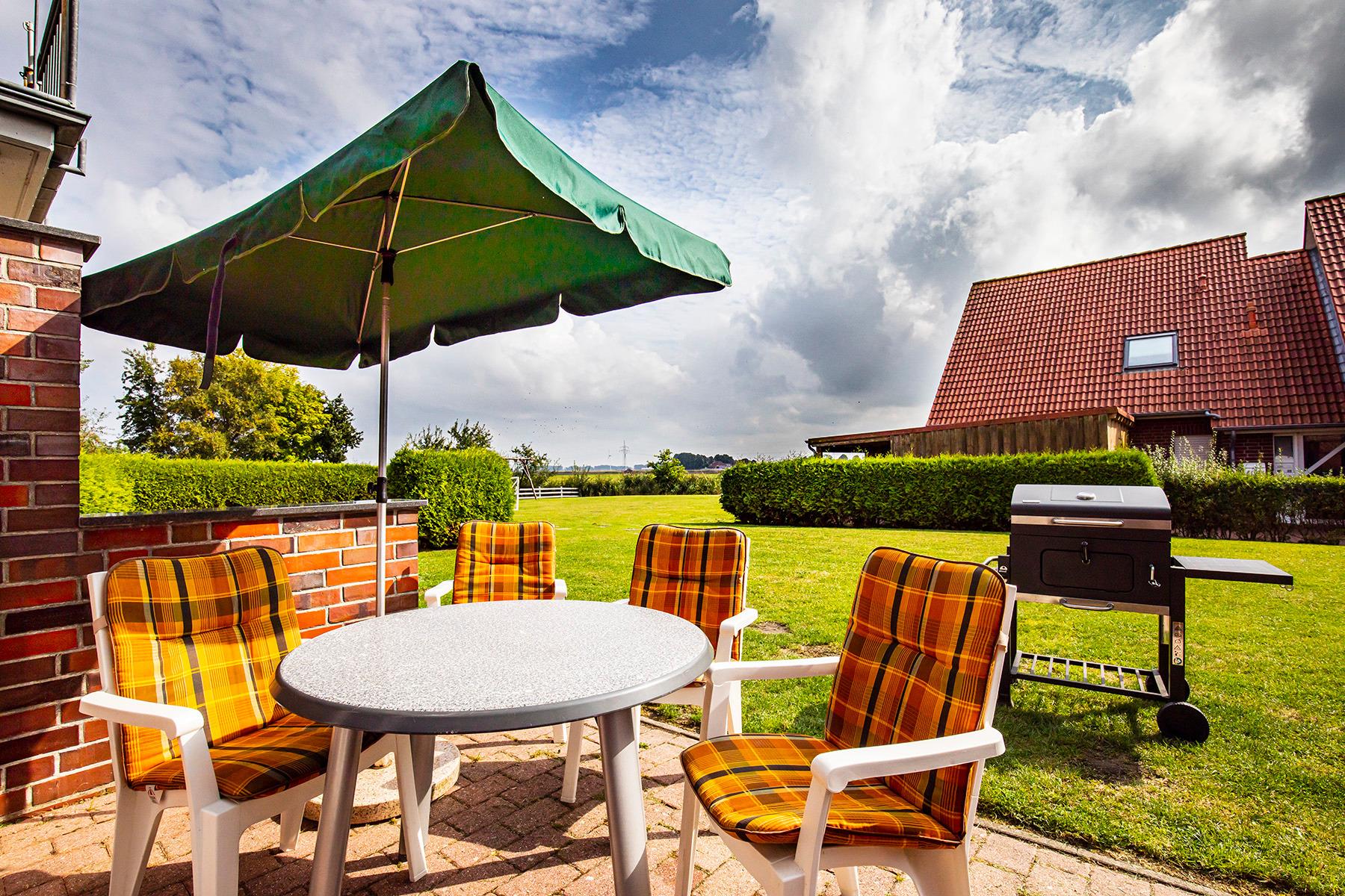 Das Haus liegt in der typisch ostfriesischen Marschlandschaft, geprägt durch die endlos erscheinende Weite. Entspannen Sie bei schönem Wetter auf der eigenen Terrasse mit Sonnenliegen, lassen Sie Ihre Kinder auf der großen Spielwiese herumtoben oder veranstalten Sie auf dem Grillplatz das leckerste Barbeque Ihres Lebens.