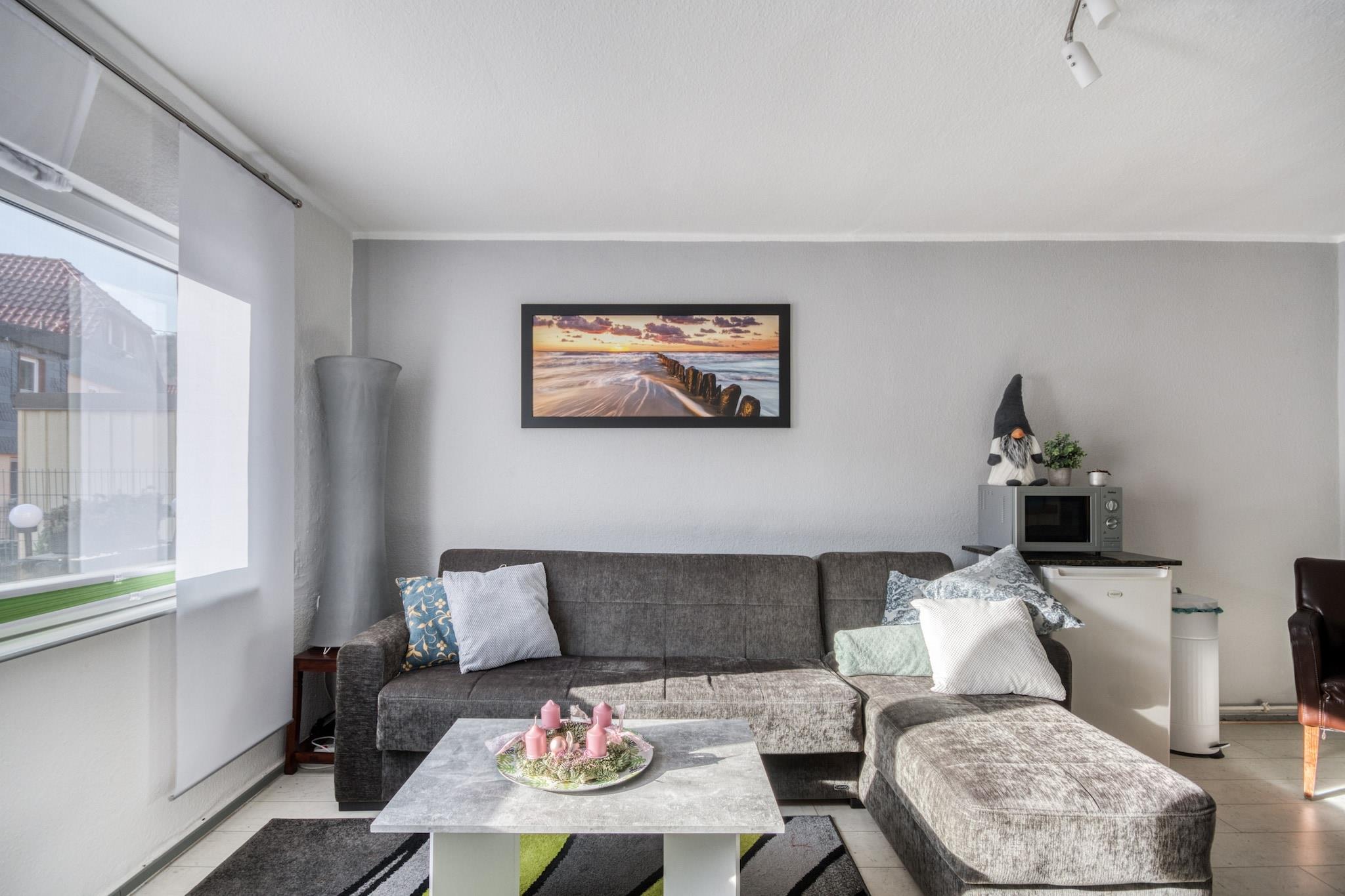 Denne kæledyrsvenlige lejlighed i stueetagen i Wernigerode OT Hasserode tilbyder et hyggeligt tilflugtssted kun 1,6 km fra byens centrum. Perfekt til par eller små familier, det er ideelt placeret til at udforske Harzen-regionens højdepunkter. Besøg det eventyrlignende Wernigerode Slot, kør på den nostalgiske Harzen-dampbane til Brocken-toppen, eller oplev luftfartshistorien på det lokale museum. Den nærliggende Wildpark Christianental og Miniaturenpark Kleiner Harz er fantastisk til familieudflugter. Lejligheden har en varm stue med brændeovn, fladskærms-satellit-tv, dvd-afspiller og et komfortabelt opholdsområde. Det åbne køkken er fuldt udstyret med keramiske og elektriske komfurer, kaffemaskiner, ovn, mikroovn og køleskab med fryser. Et rummeligt soveværelse med dobbeltseng og et moderne badeværelse med bruser og hårtørrer sikrer et afslappende ophold. Nyd den private terrasse, indhegnet have, grill (på forespørgsel) og ladepost til elbil. Central gasvarme og insektnet bidrager til komforten. Omgivet af skovstier og kun 3 km fra skiløjperne, er beliggenheden ideel til eventyr året rundt. Spisemuligheder i nærheden omfatter det rustikke Altwernigeröder Kartoffelhaus, den livlige Restaurant Hexenkessel og den elegante Restaurant 1835 Im Hotel Altora.