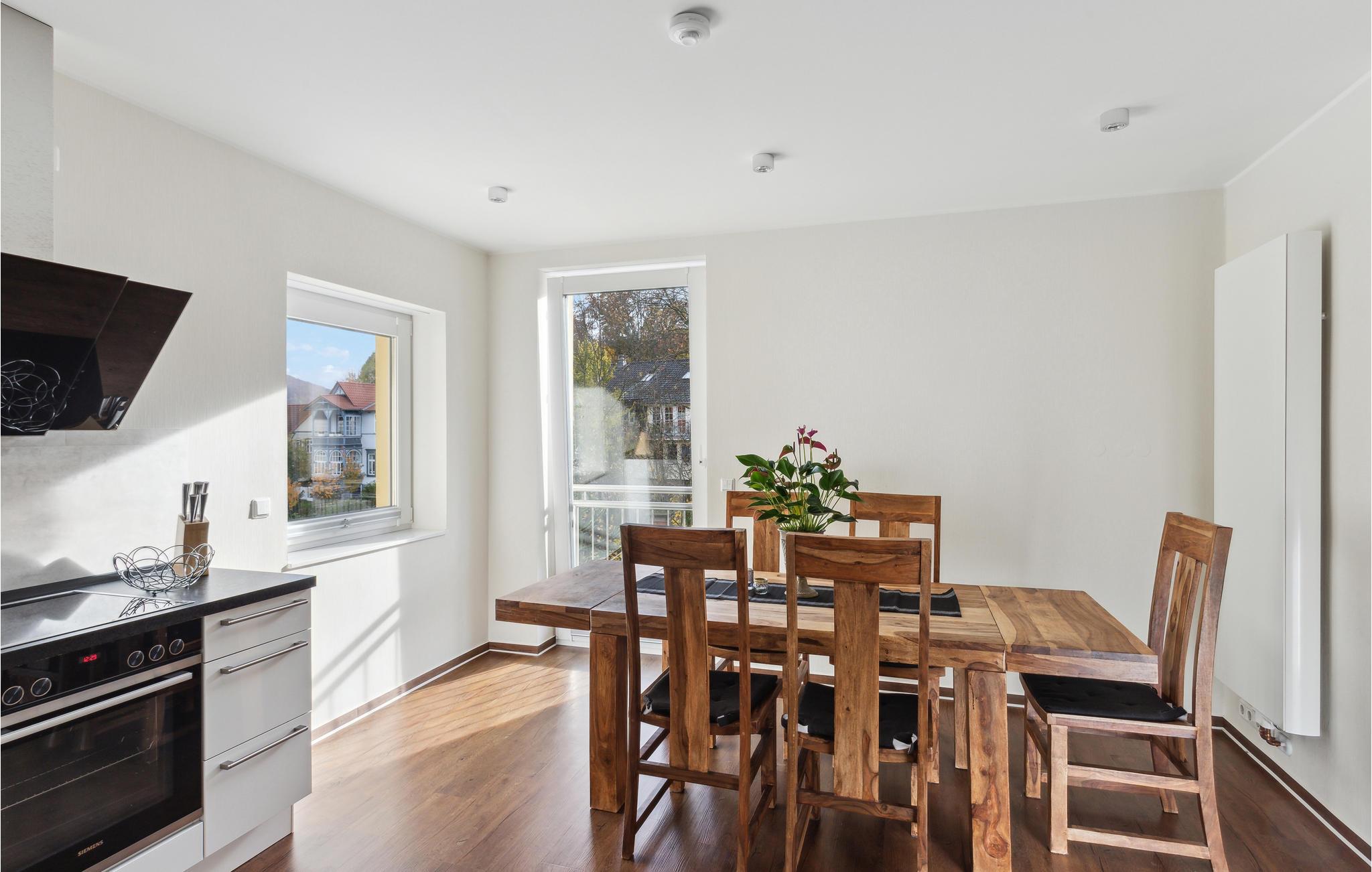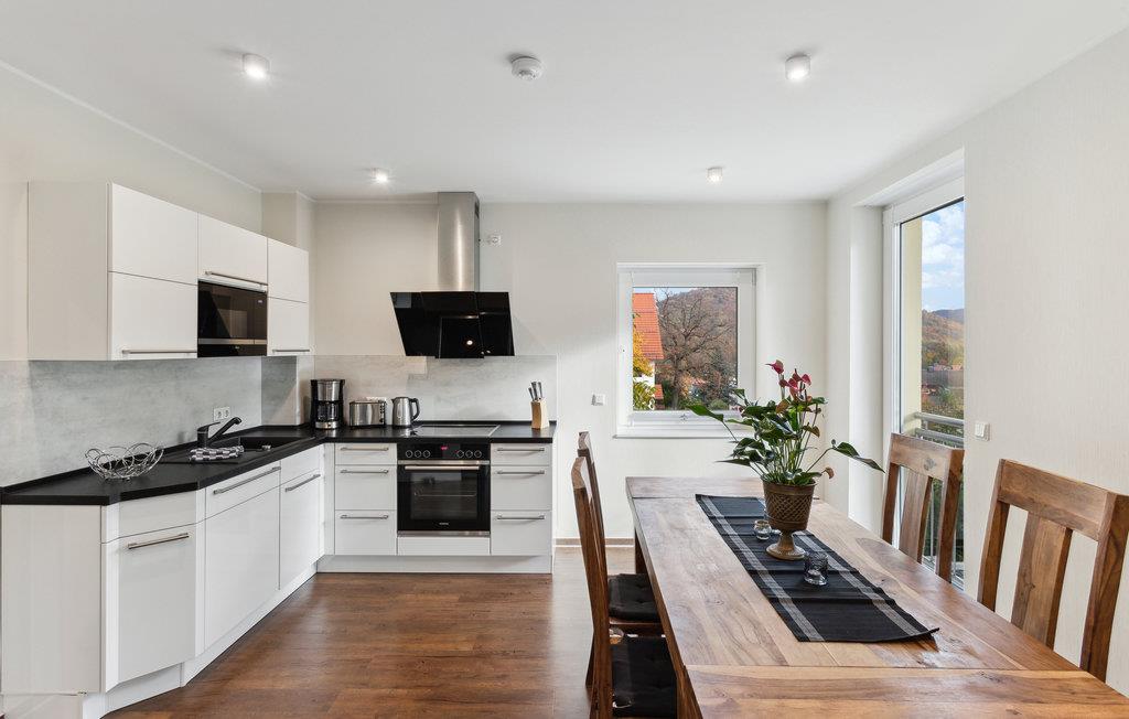 Fra køkkenet og stuen kan I gå lige ud på altanen, hvor I har en smuk udsigt over Wernigerode Slot.