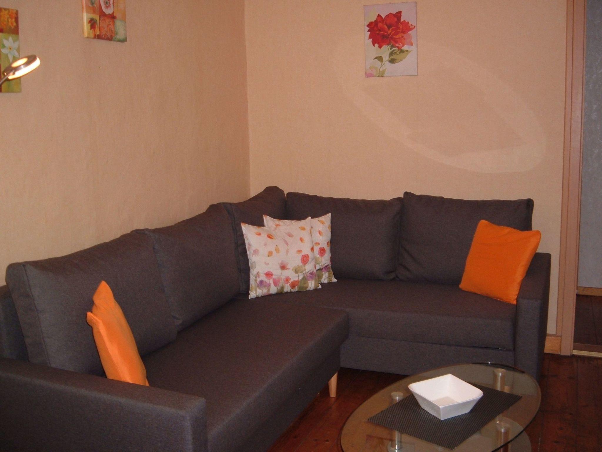 The cosy holiday flat with a great view of our Wernigerode castle consists of a living room with a comfortable couch corner , satellite TV and CD player , a bedroom with a double bed / with adjustable slatted frame + single bed , a kitchen with cooker and everything you need such as coffee maker , microwave , kettle , toaster and refrigerator . Table and chairs in the kitchen allow a cosy meal with the whole family , the large bathroom is equipped with shower and toilet , board games and books available !
