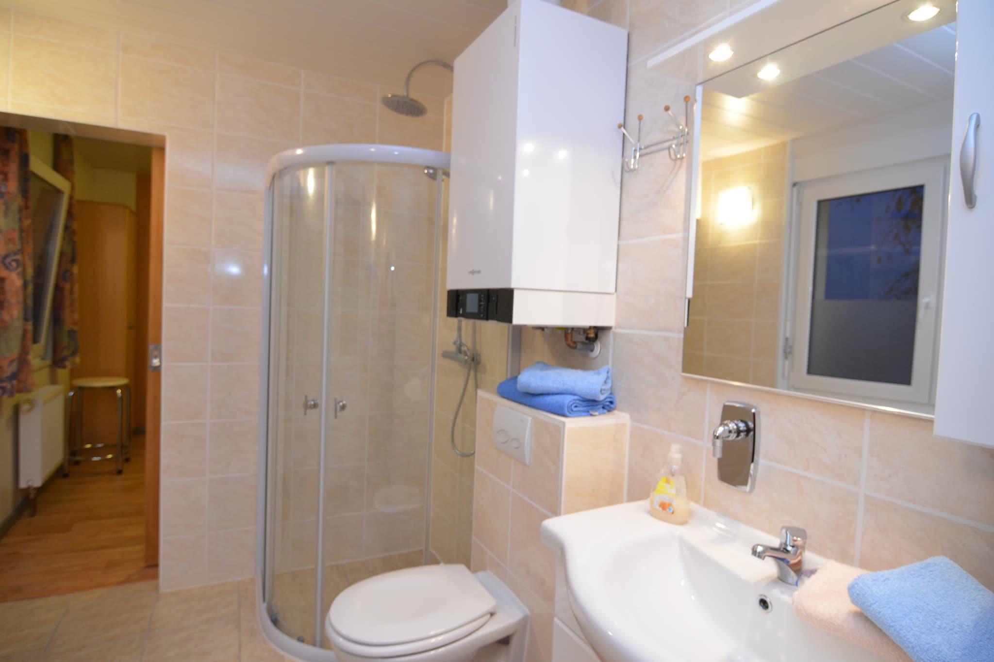 Denne indbydende lejlighed i stueetagen i Wernigerode tilbyder en hyggelig og kæledyrsvenlig tilflugtssted kun 1 km fra byens centrum. Perfekt til par eller små familier, det er en ideel base for at udforske Harzen. Nærliggende attraktioner omfatter det majestætiske Wernigerode Slot, den finurlige Miniaturenpark Kleiner Harz og den nostalgiske Harzen Steam Railway. Historieinteresserede vil nyde rådhusets gotiske charme, mens naturelskere kan vove sig til Brocken-toppen eller slentre gennem Harzen National Park. Lejligheden har en lys stue med en enkelt sovesofa, satellit-tv og spiseplads. Det moderne køkken er udstyret med keramisk komfur, ovn, mikroovn, opvaskemaskine og køleskab med fryser. Et komfortabelt soveværelse med dobbeltseng og et velindrettet badeværelse med bruser sikrer et afslappende ophold. Centralvarme, en privat indhegnet have med møbler og parkering på stedet tilføjer til bekvemmeligheden. Omgivet af skov og tæt på offentlig transport, swimmingpools og skiløjper, er beliggenheden perfekt til aktiviteter året rundt. Spisemuligheder i nærheden omfatter det rustikke Altwernigeröder Kartoffelhaus, den livlige Restaurant Hexenkessel og den elegante Restaurant 1835 Im Hotel Altora.