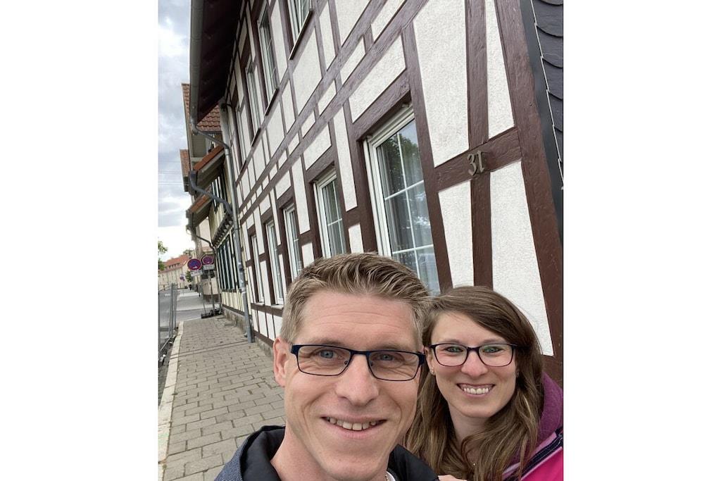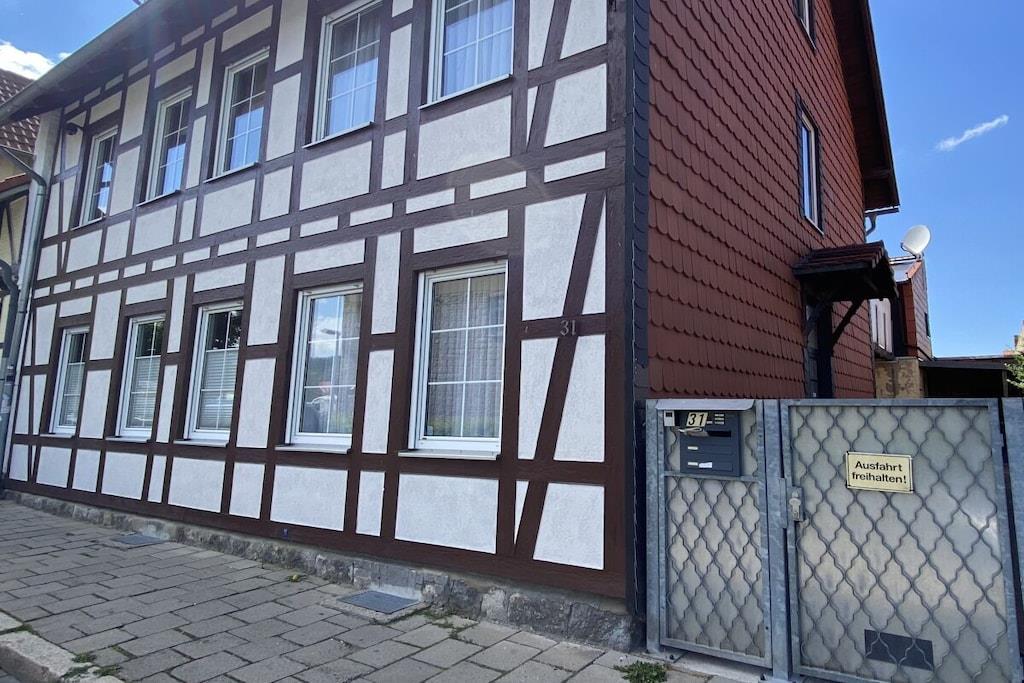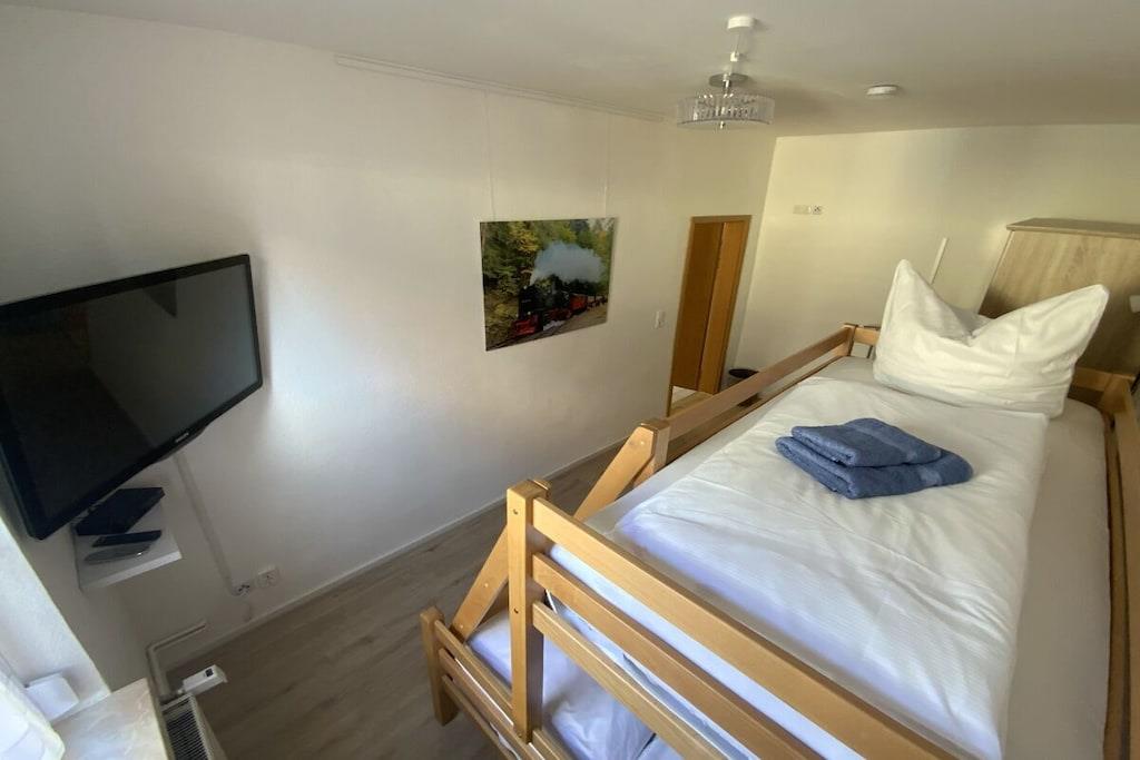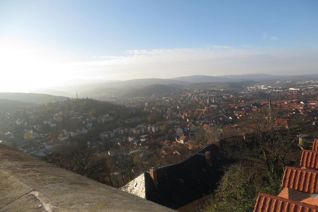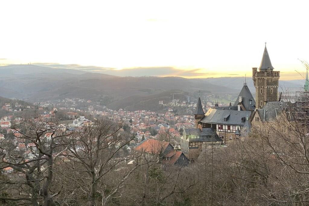 Cozy modern holiday apartment for 6 people + baby with a terrace close to the center in Wernigerode with a view of the castle from the living room.