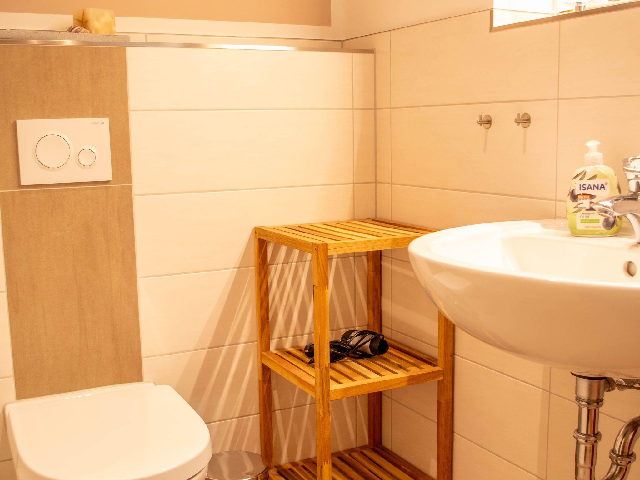 Die Wohnung verfügt über ein Wohnzimmer mit einem Fernseher, DVD Player einem Fernsehsessel und einer gemütlichen Sitzecke. Das Bad wurde erst vor kurzem umgebaut und hat eine ebenerdige Dusche und ein WC. Im Obergeschoß finden Sie den Wohn-Eßbereich mit einem großen Eßtisch und einer Sitzecke. Auch einen Fernseher finden Sie dort. Die Küche ist vollständig ausgestattet.
