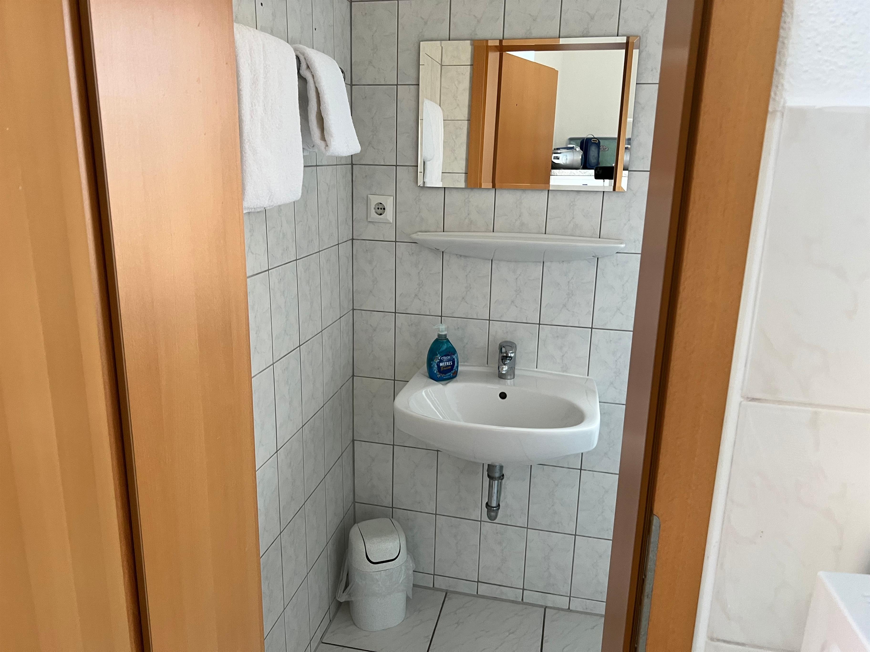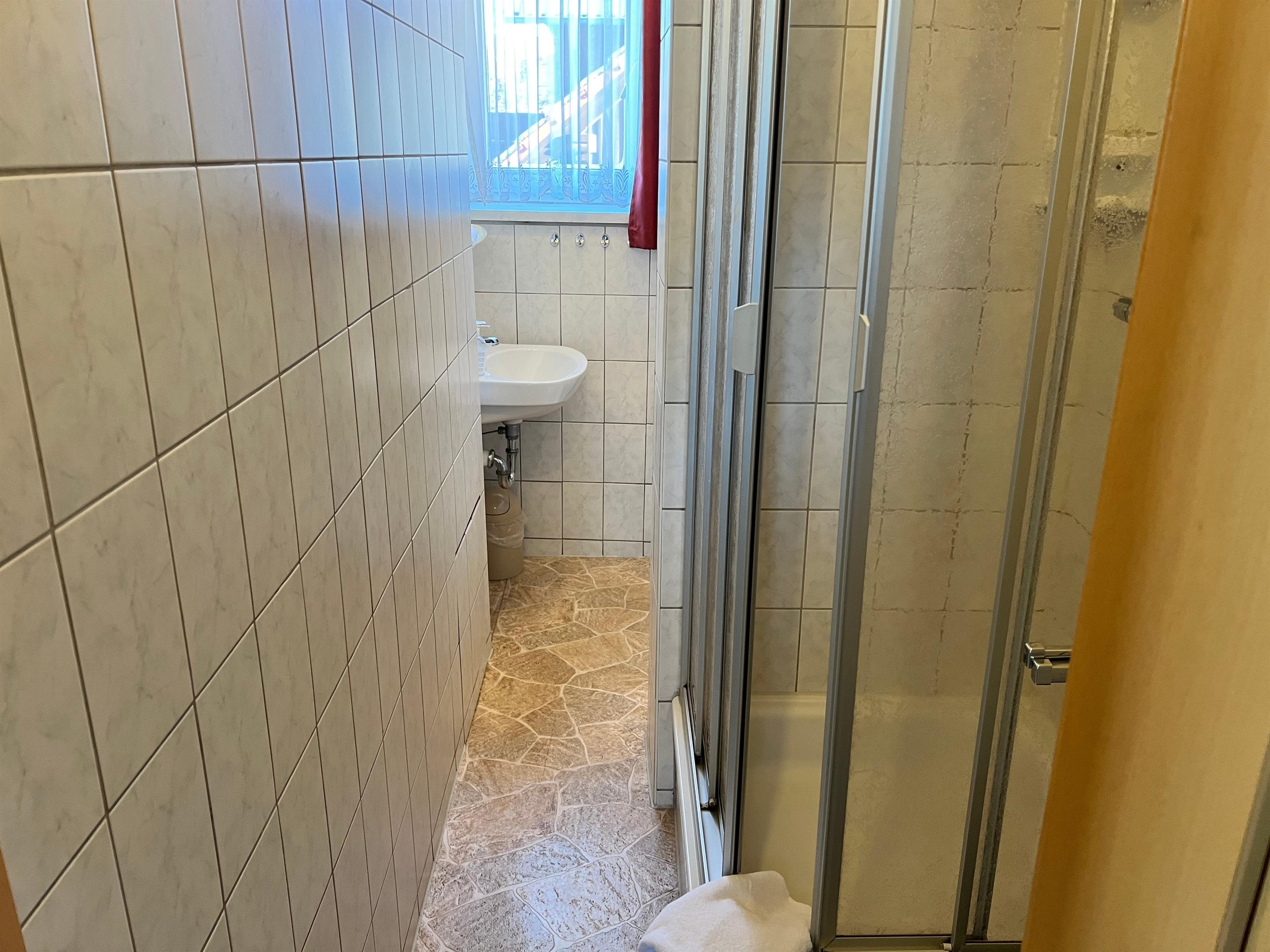Die Wohnung hat ein Bad mit WC und ein 2. Bad nur mit Waschbecken und Dusche.