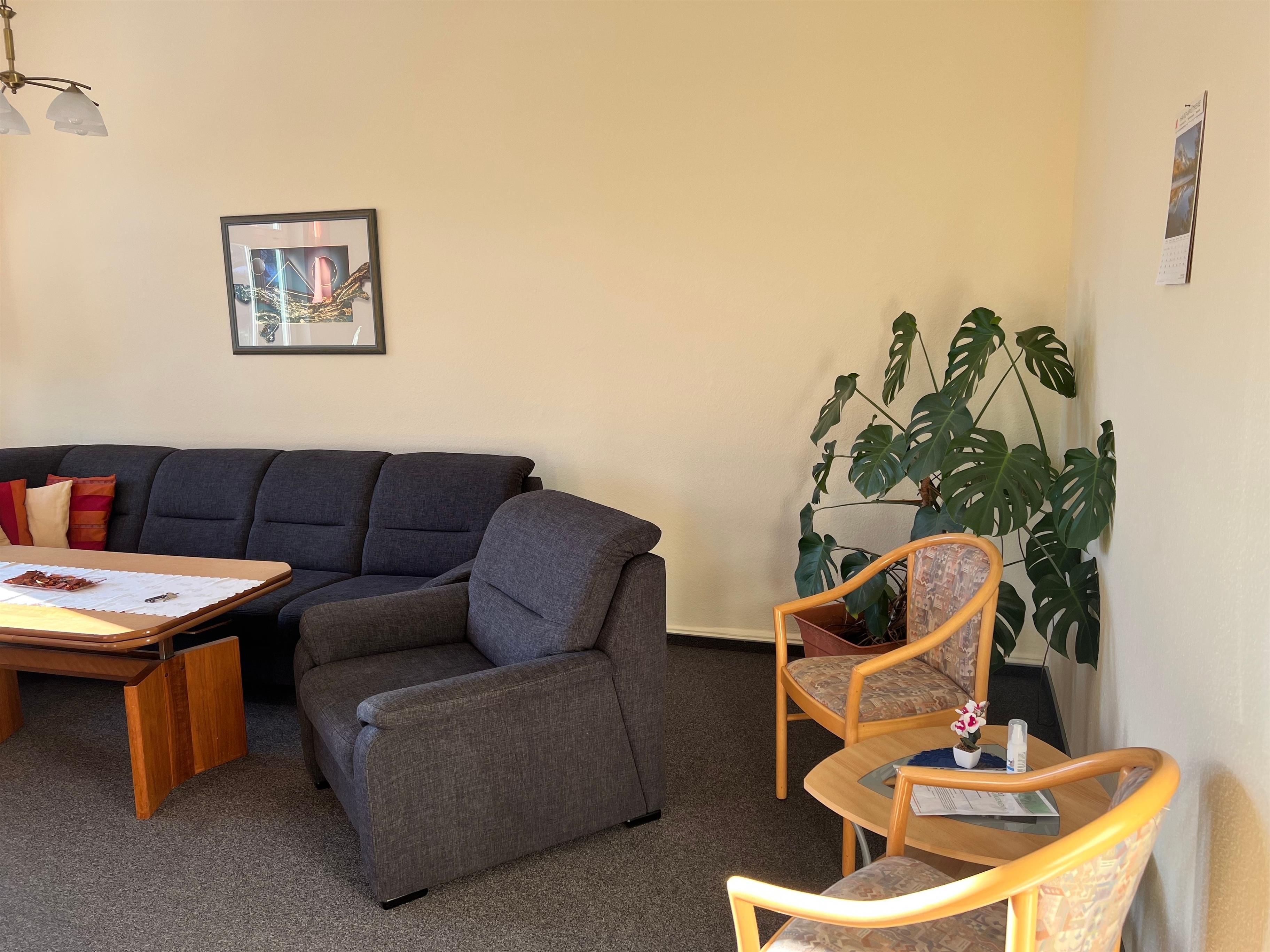 Die Ferienwohnung hat eine Größe von 110 qm. Ein Wohnzimmer mit großer Eckcouch und Sessel hat eine Größe von ca. 24 qm.