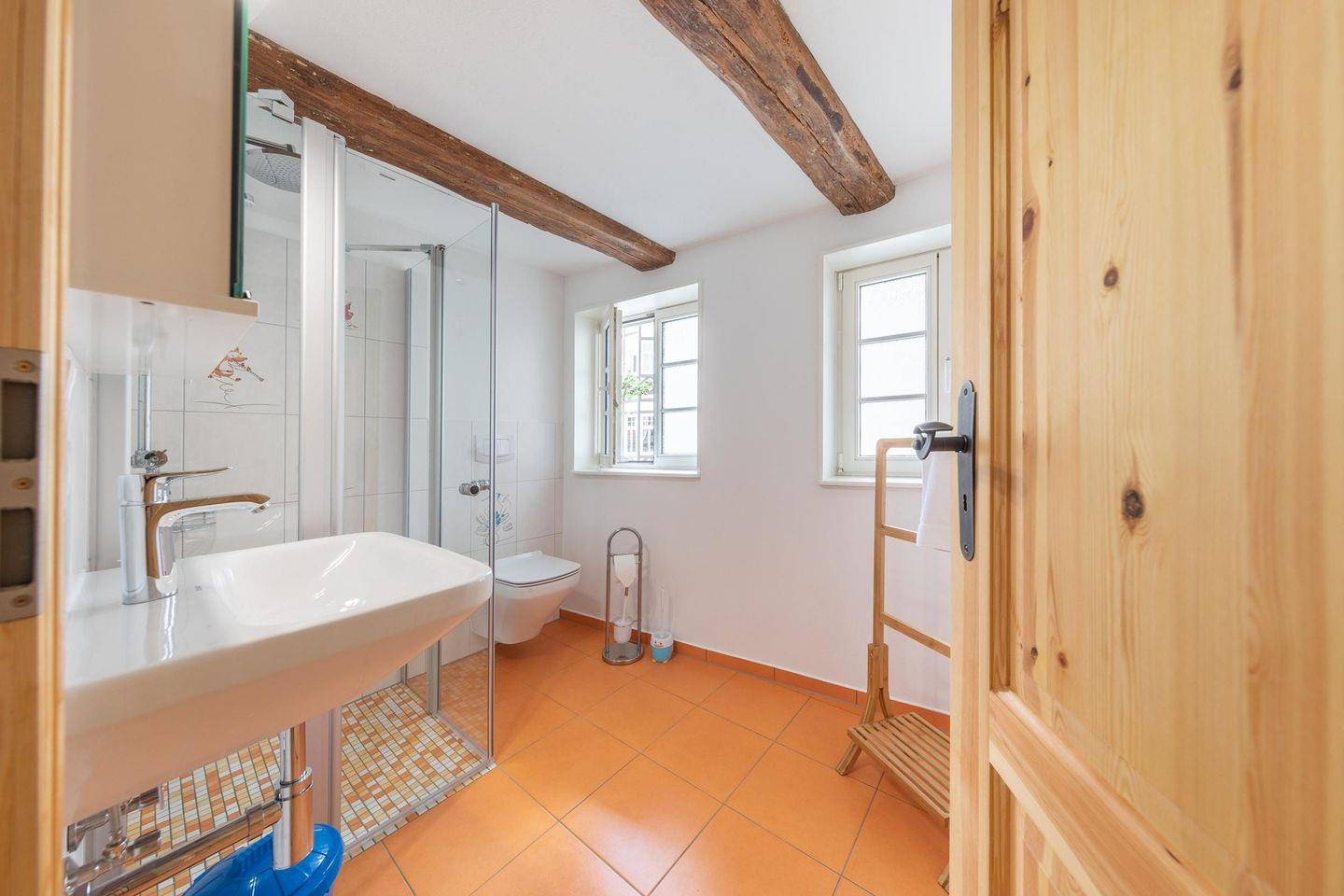 Es steht Ihnen hier noch ein Tageslichtbad mit ebenerdiger Dusche, Waschbecken und WC in