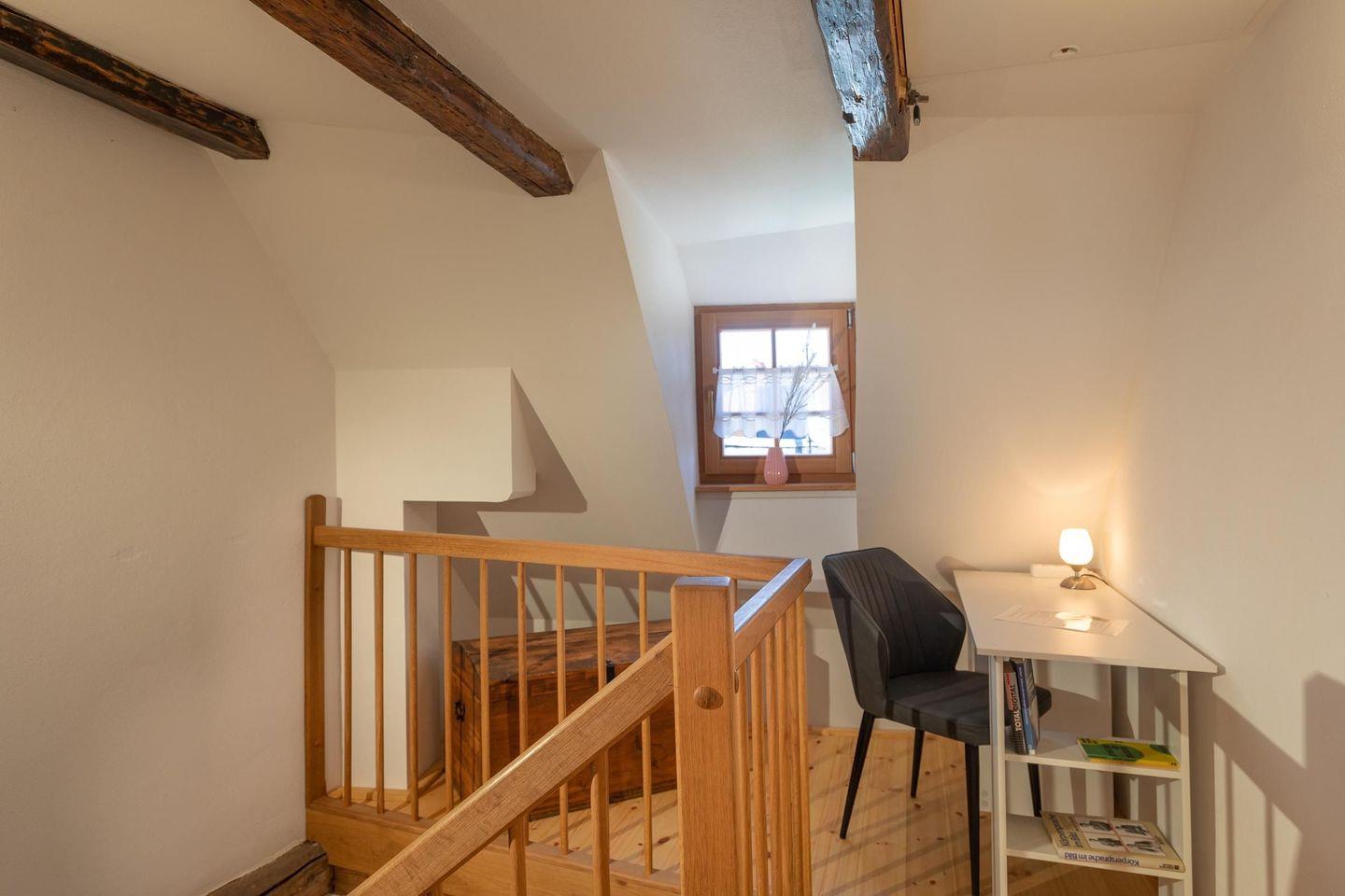 Im Dachgeschoss befindet sich auch sich im Haus 27 ein Arbeitsbereich mit Schreibtisch und