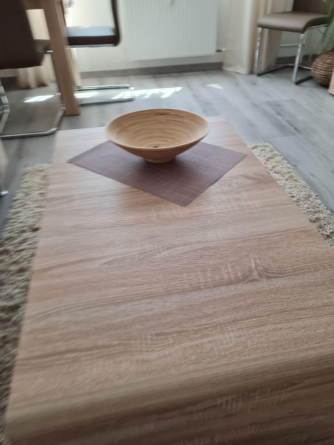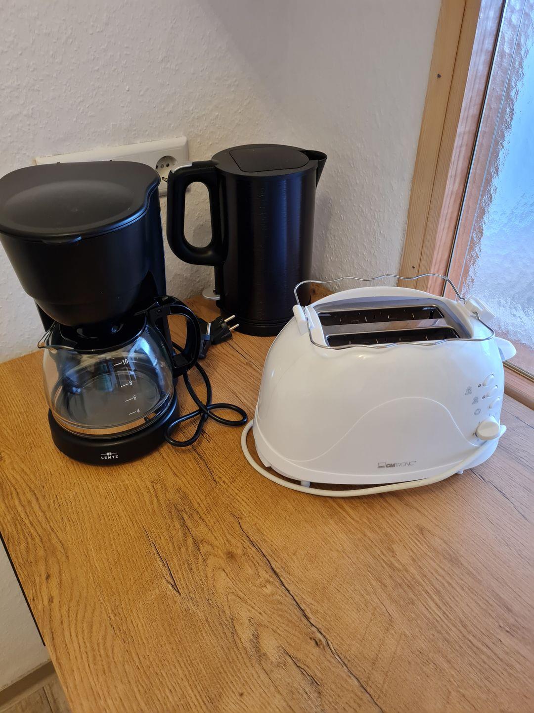 Im Wohn- Essbereich befindet sich eine gemütliche Couch und ein Tisch mit 3 Stühlen. Das Sofa lässt sich zum Bett umbauen und bietet so ausreichend Platz für eine weitere Person.