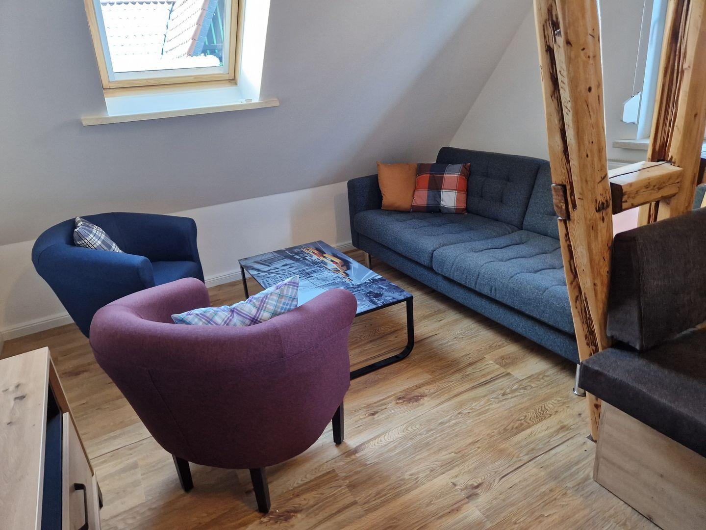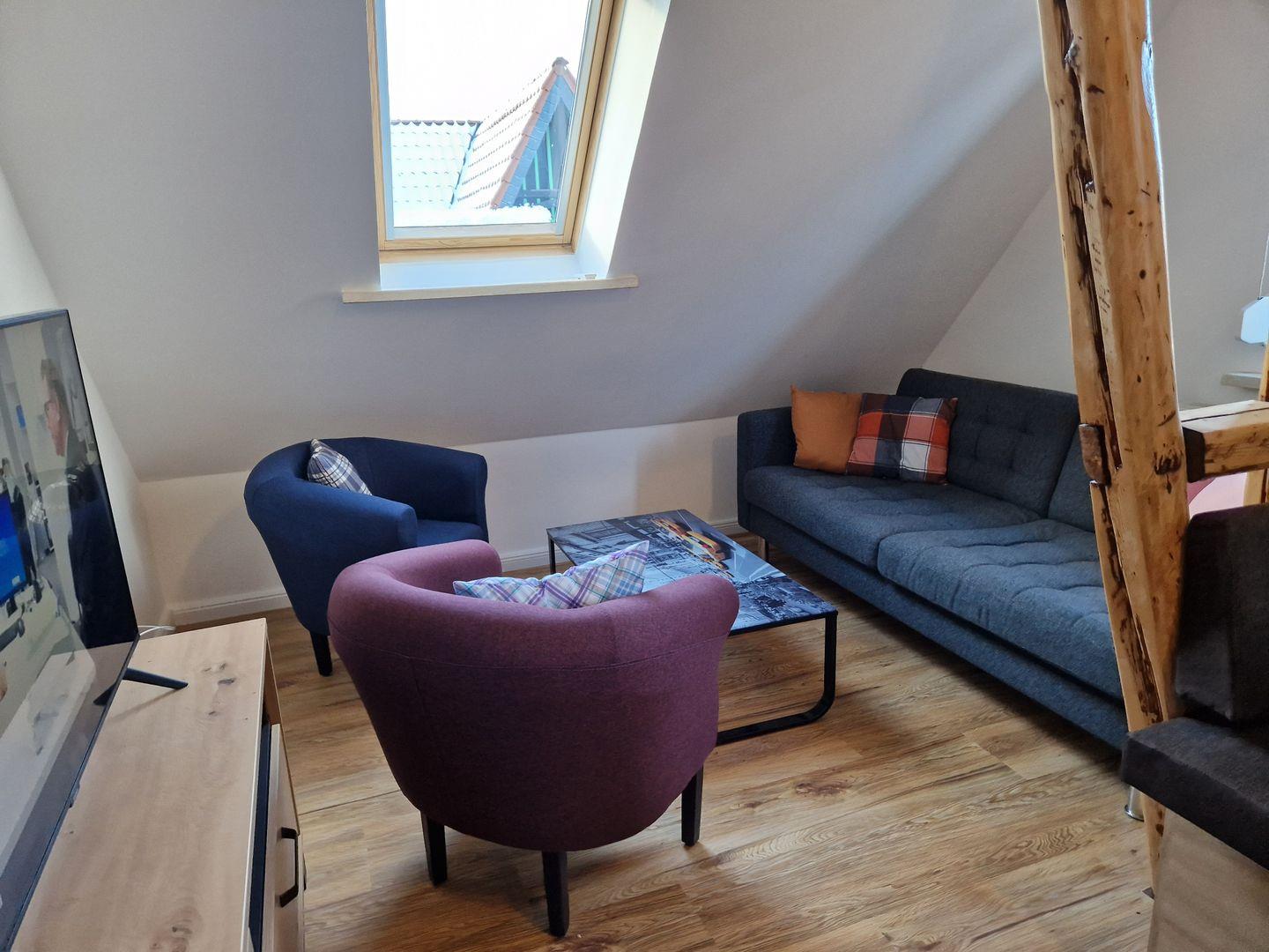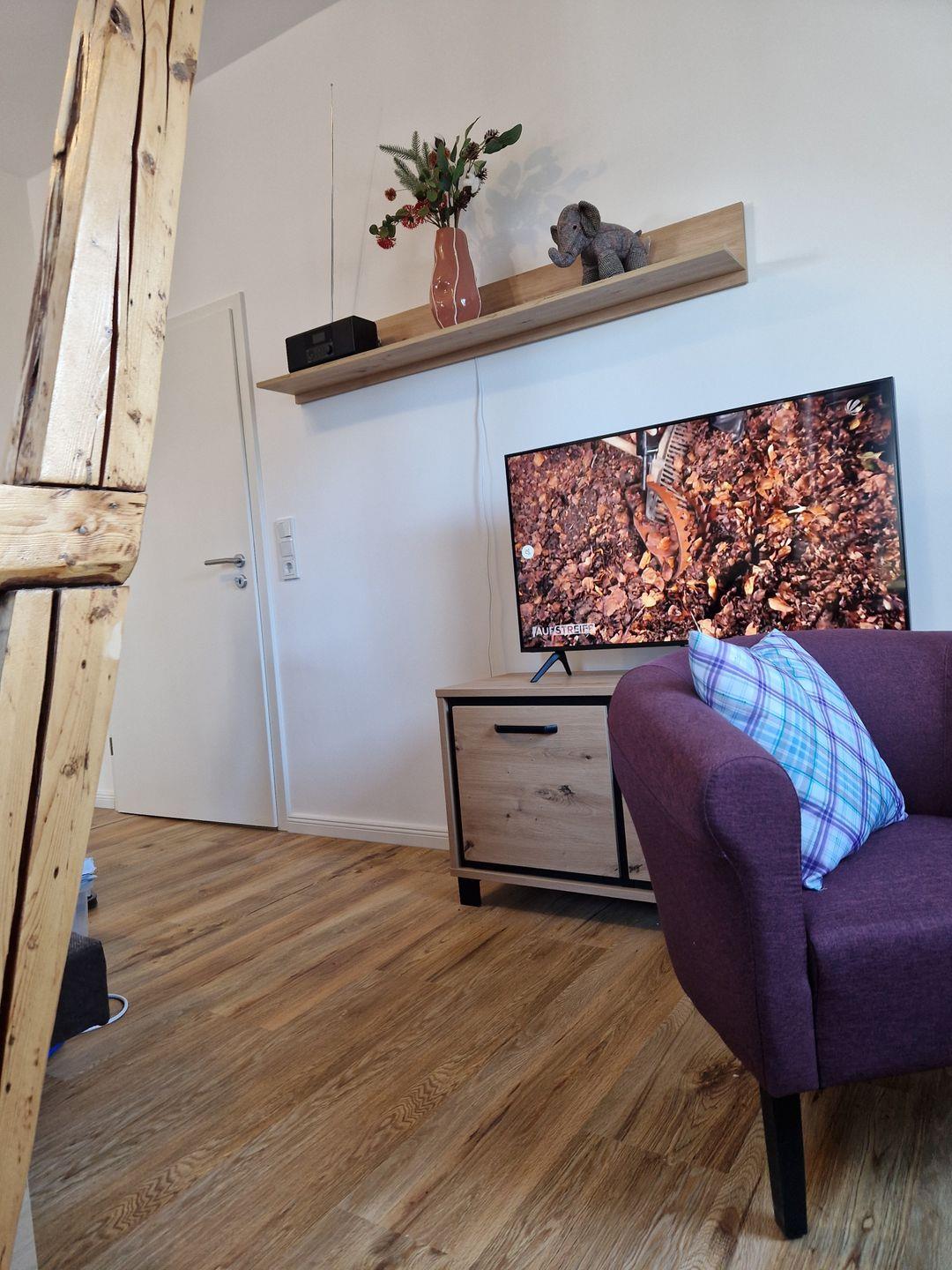 Das alte Fachwerkhaus wurde 2023 komplett saniert und verfügt über drei komplett eingerichtete Wohnungen auf drei Etagen.