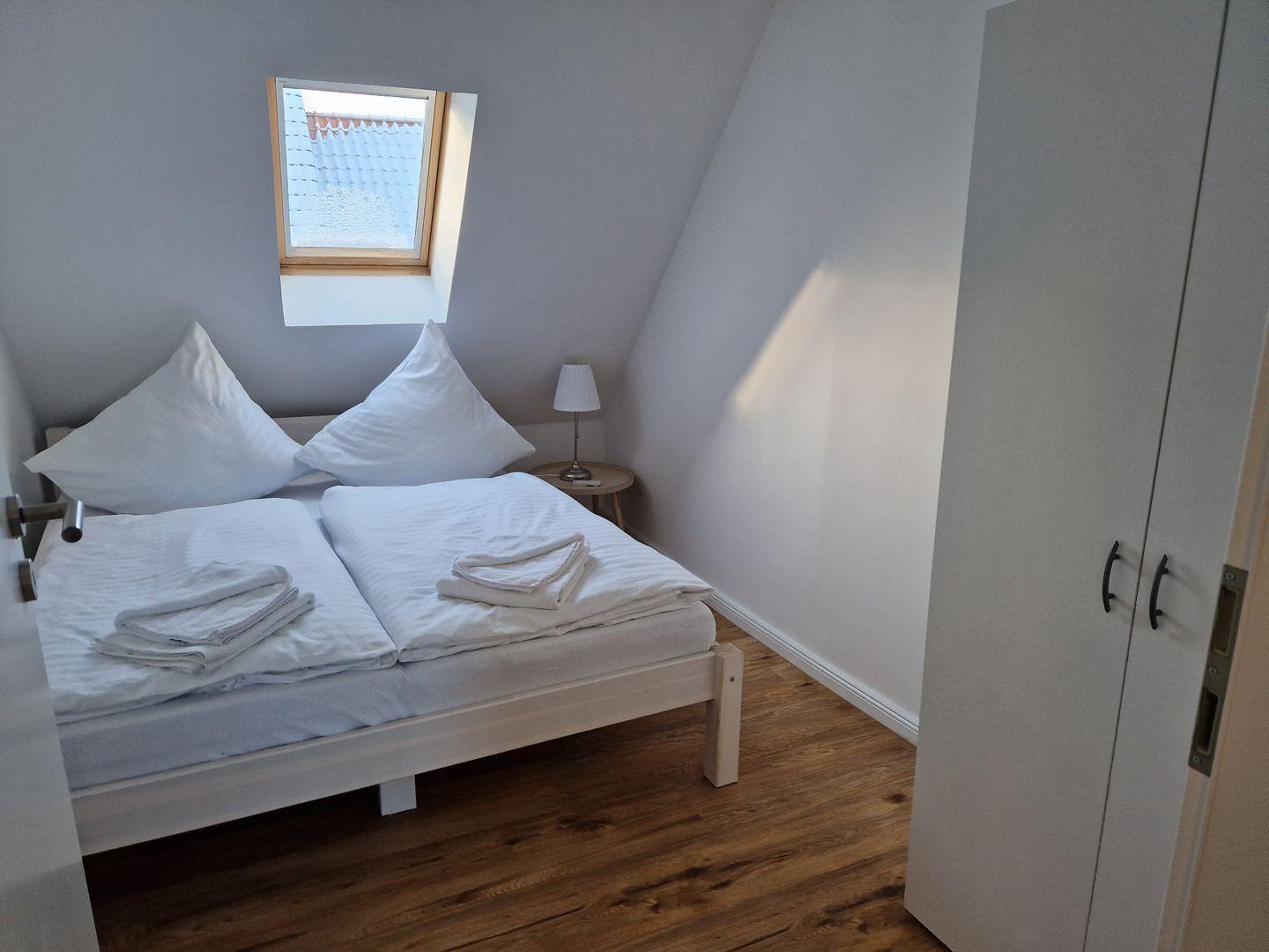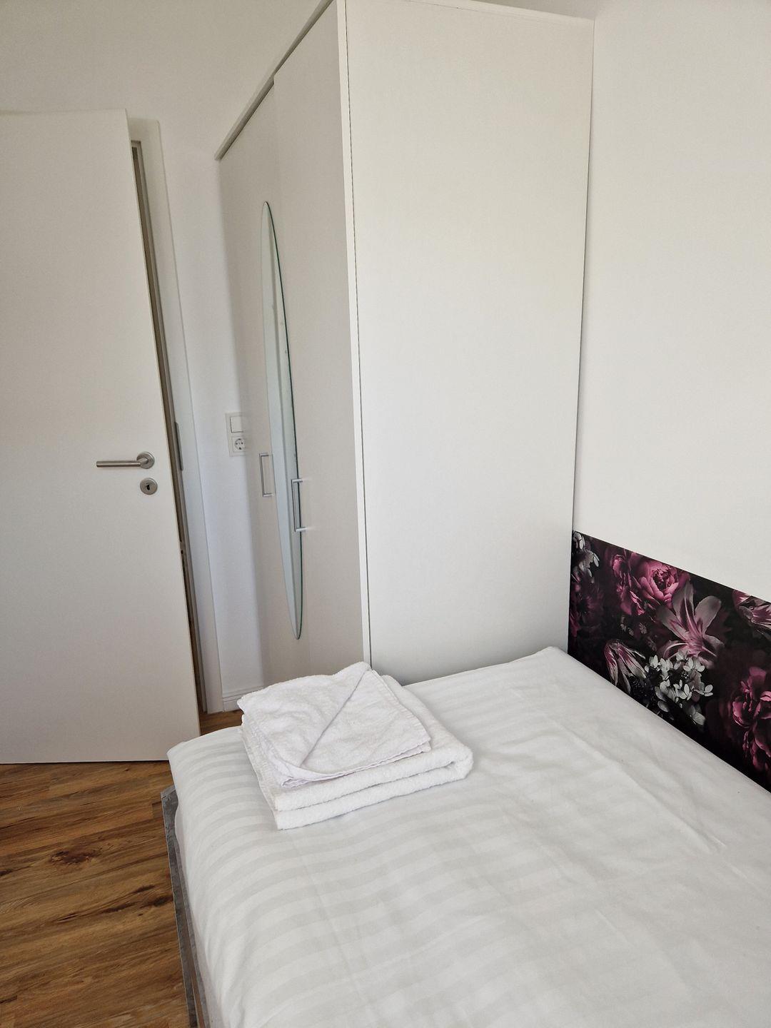 Im 1. Schlafzimmer ist ein Doppelbett und ein kleiner Kleiderschrank. Im 2. Schlafzimmer gibt es ein Einzelbett und auch einen kleineren Kleiderschrank. Das 3. Schlafzimmer bietet in einem Doppelbett und Einzelbett Platz für insgesamt 3 Personen. Auch in diesem Schlafzimmer gibt es einen Kleiderschrank, der genügend Stauraum für Ihre Kleidung bietet.