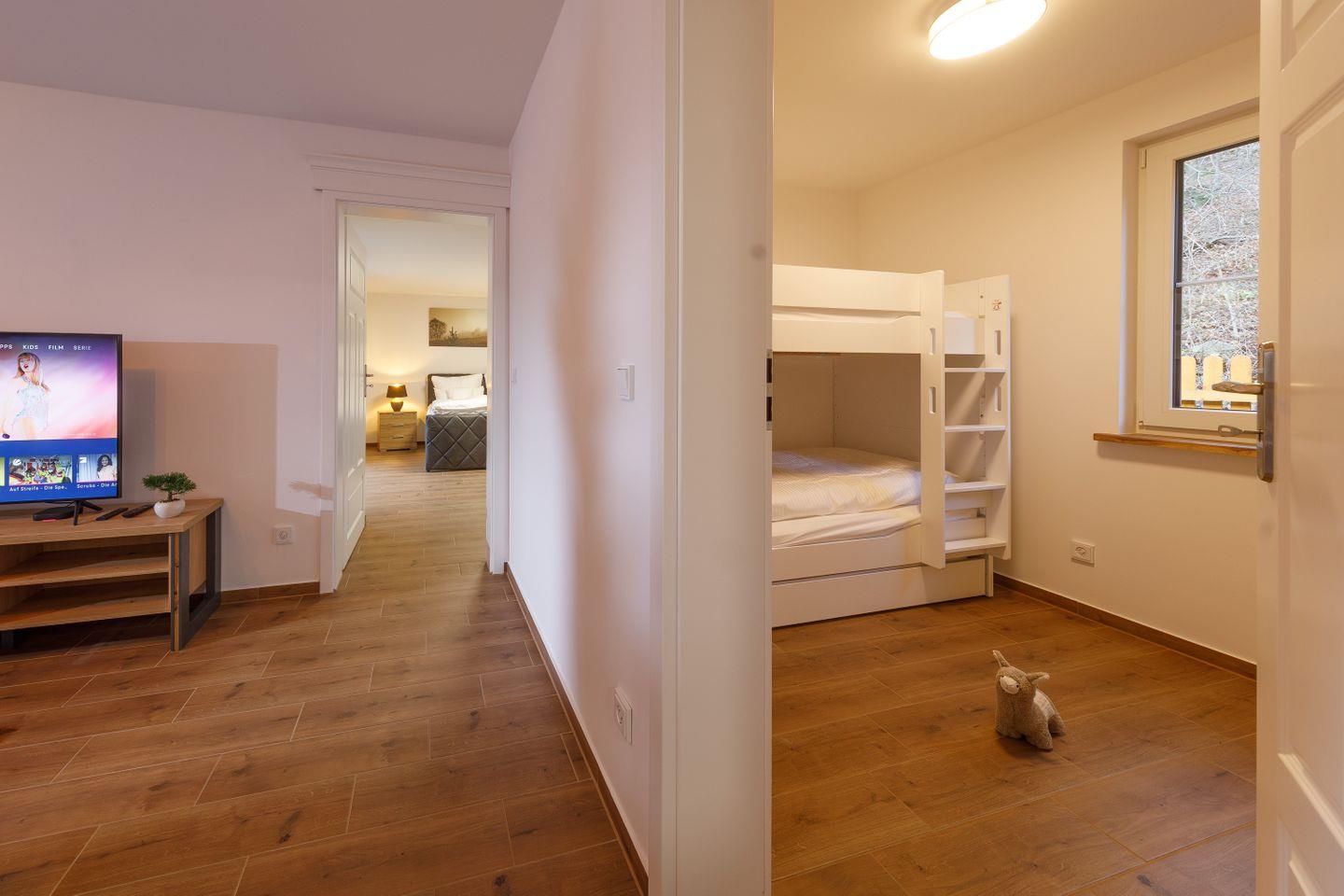 Das modern eingerichtete Ferienhaus liegt 2,6 km vom Zentrum entfernt im Ortsteil Friederiketal in Wernigerode. Es verfügt über ein großes Schlazimmer mit Doppelbett, ein Kinderzimmer mit Etagenbett (optional auf 3 Betten erweiterbar) sowie einem großzügigen Wohn- und Essbereich mit offener Küche. Das Wohnzimmer ist mit Sofa und TV Gerät ausgestattet. Zusätzlich gibt es im Wohnzimmer einen Kicker. Kostenfreies W-Lan steht zur Verfügung.