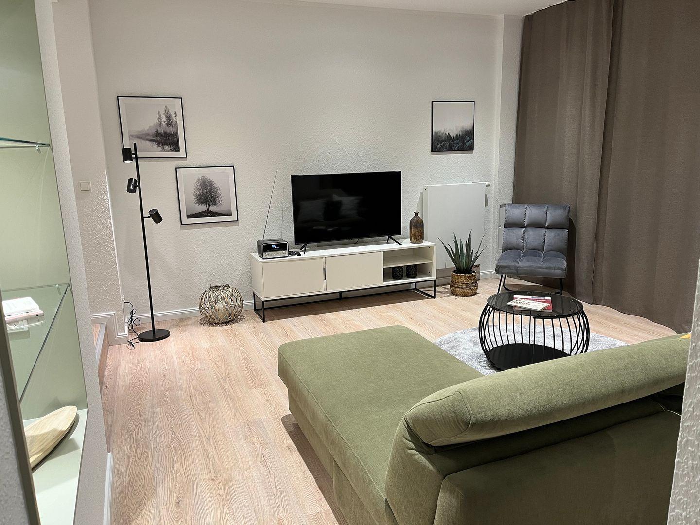 Wir bieten Ihnen kostenloses WLAN, Steckdosen mit USB-Anschluss und Flachbild-Sat-TV im Wohn- und Schlafzimmer sowie ein Internetradio mit CD-Fach.