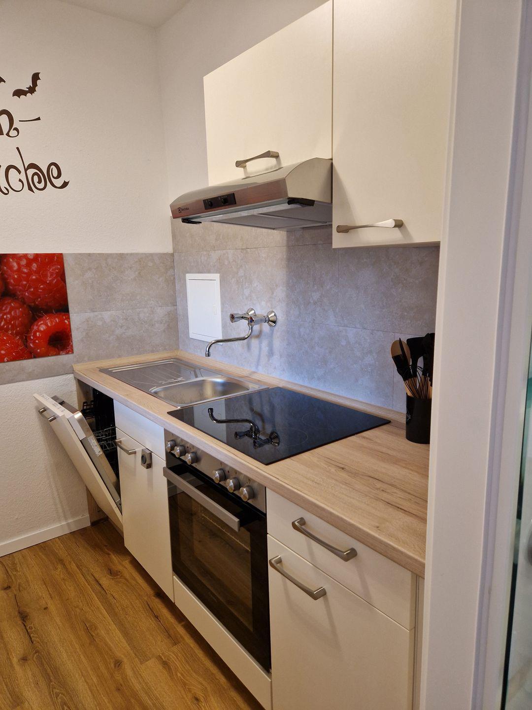 Die komplett ausgestattete Küche verfügt über einem Geschirrspüler, einem Ceranfeld und einem Backofen.