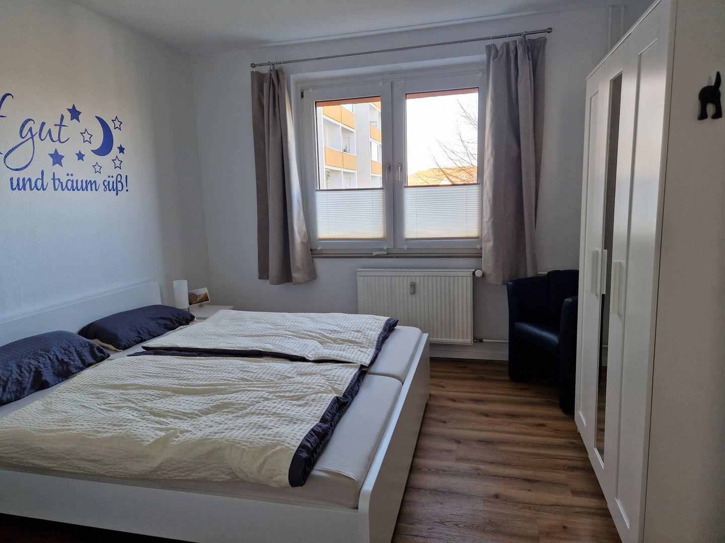 Diese modern eingerichtete Ferienwohnung im Mehrfamilienhaus verfügt über zwei Schlafzimmer wovon eins mit Doppelbett und das andere mit zwei Einzelbetten ausgestattet ist. Beide Schlafzimmer verfügen über Kleiderschrank und Nachtkästchen.