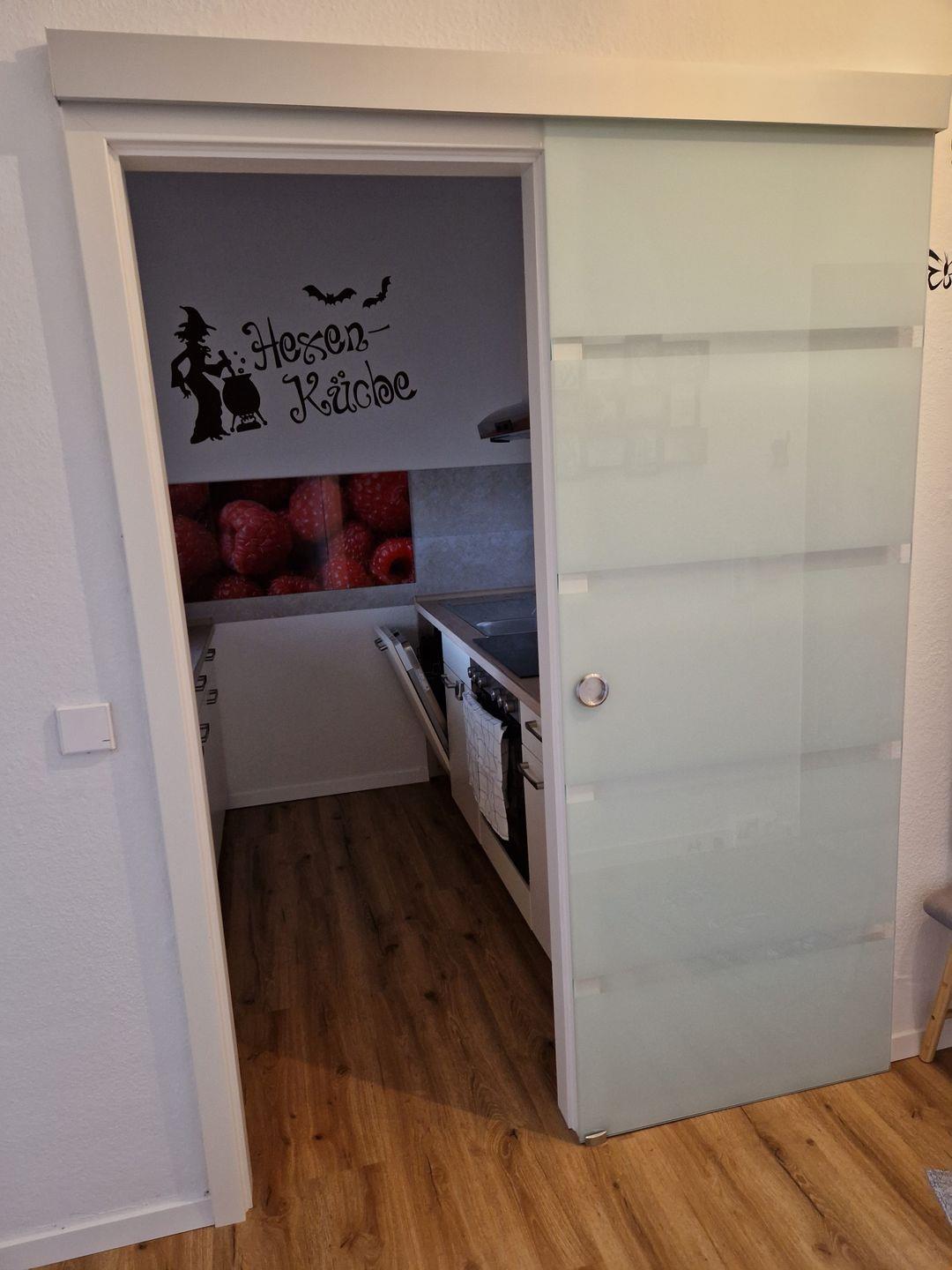 Im Wohn- Essbereich befindet sich eine gemütliche Couch und ein Esstisch mit 4 Stühlen. Das Wohnzimmer verfügt zudem über einen Smart-TV. In der gesamten Wohnung ist kostenloses WLAN verfügbar.