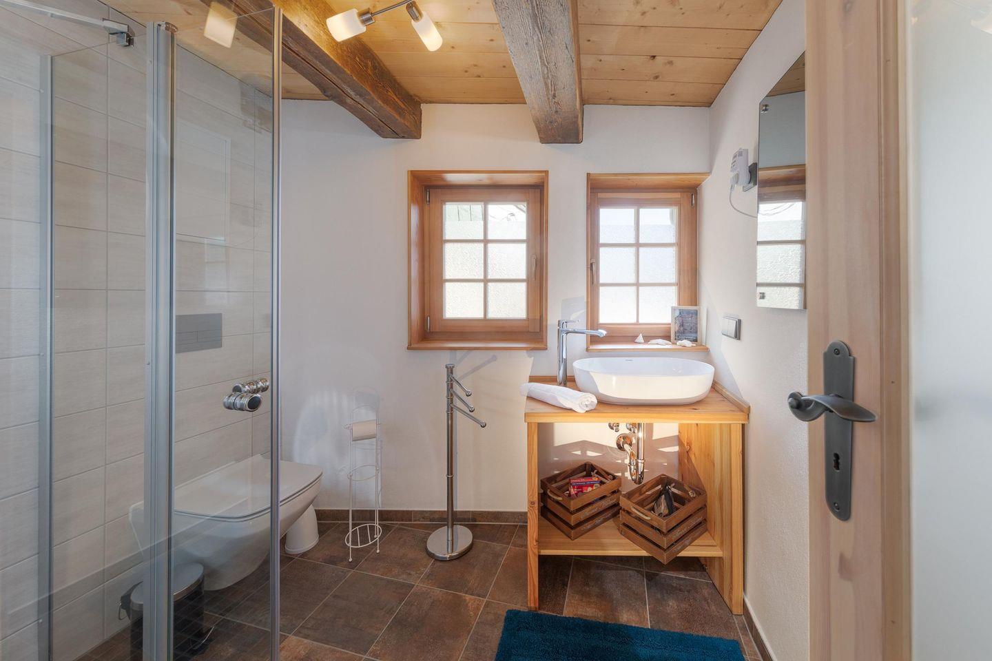 Es steht Ihnen hier noch ein Tageslichtbad mit ebenerdiger Dusche, Waschbecken und WC