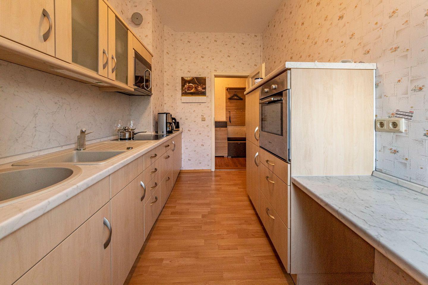 Die moderne Küche ist gut ausgestattet. Dort können Sie Ihren Tag genussvoll mit einer guten Tasse Kaffee am Esstisch starten