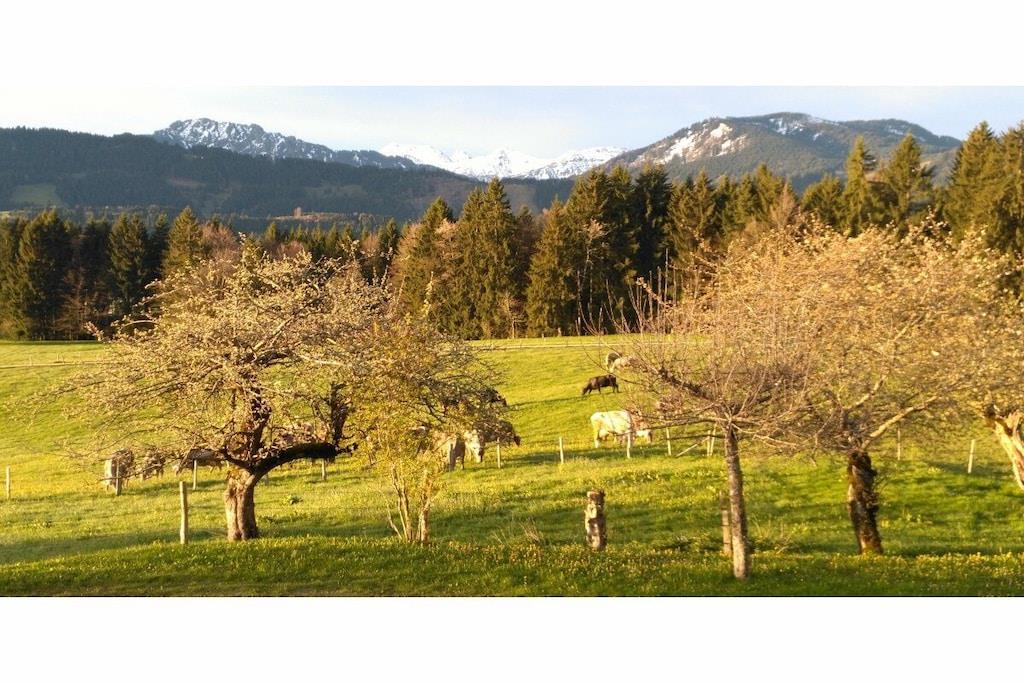 Welcome to our Luxurious non-smoking apartment with a wonderful Free panoramic view of the Allgäu and Austrian Tyrolean Alps