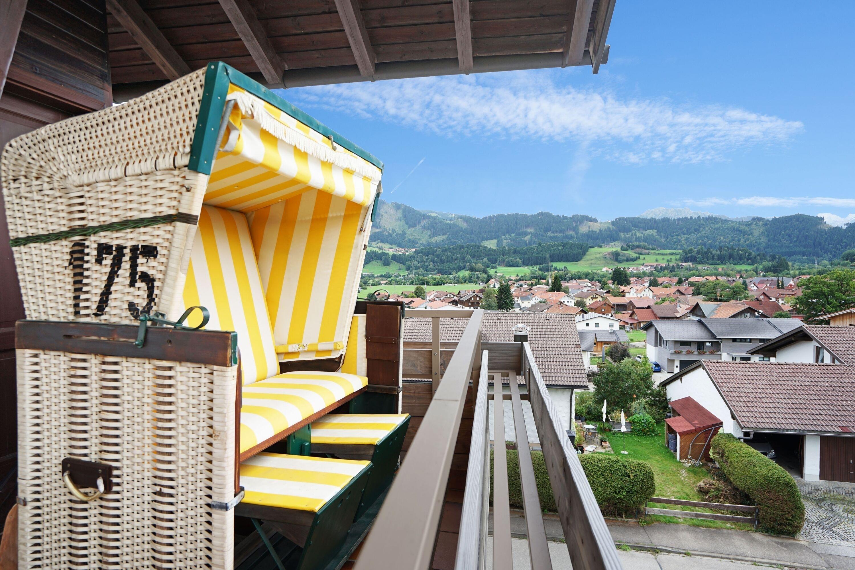 Balkon mit Balkonmöbeln und Panoramablick, Strandkorb