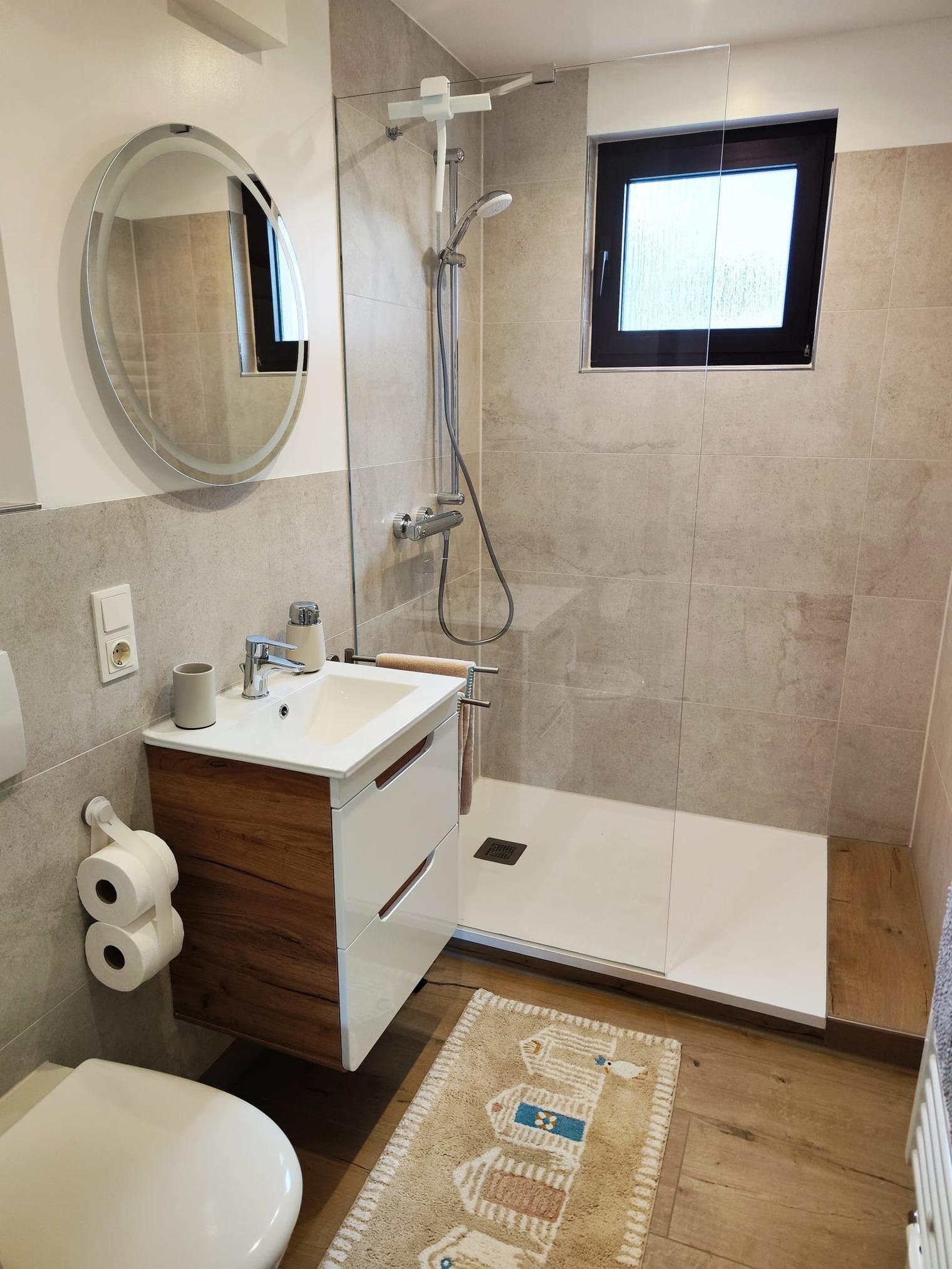 Die Wohnung verfügt über 50m² Wohnfläche, (1 Schlafzimmer, 1 Wohnbereich, Küche und Bad) ist liebevoll und großzügig eingerichtet, hell und modern ausgestattet. Der große Garten inklusive Terrasse lädt zum Entspannen ein.