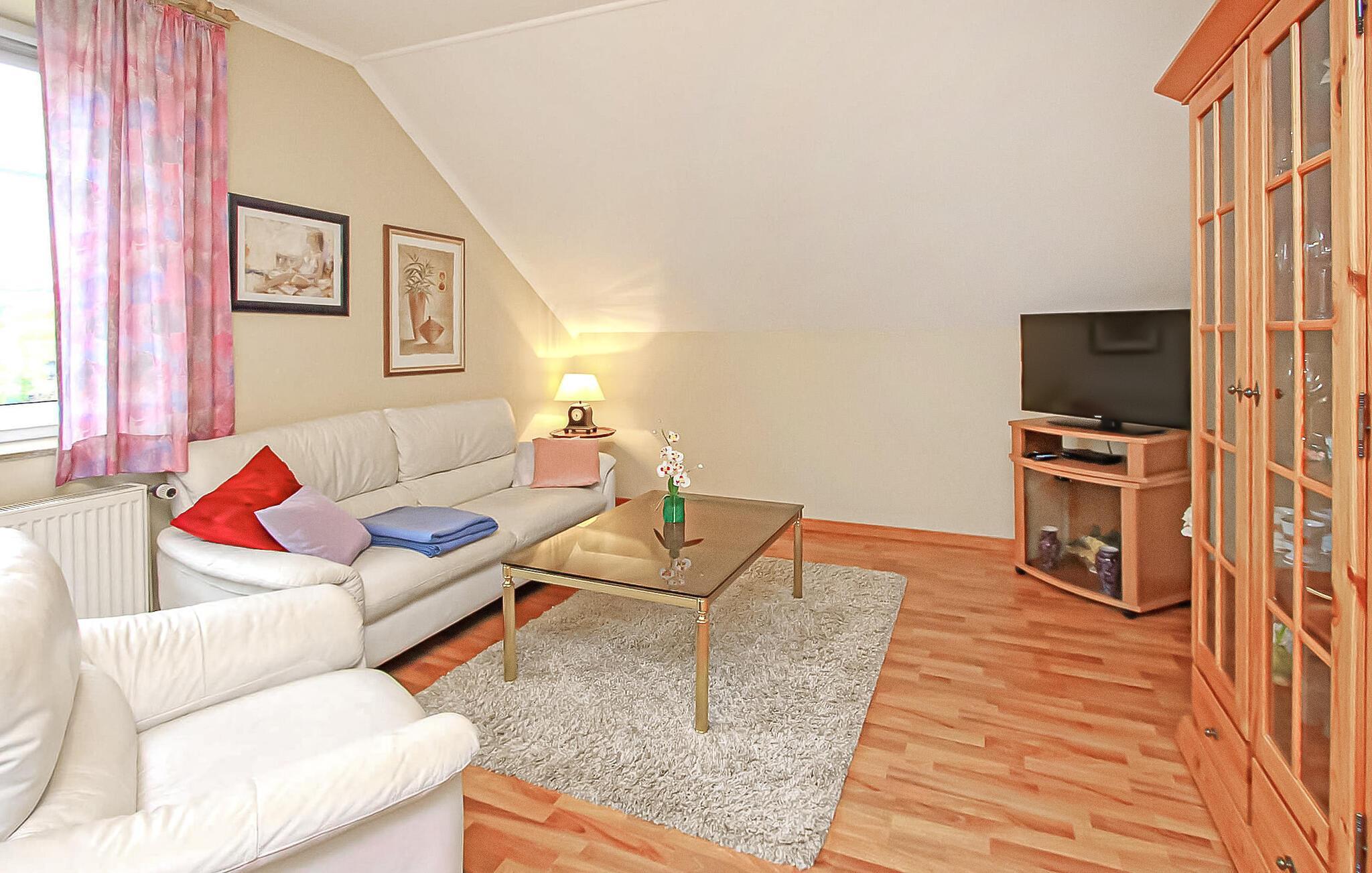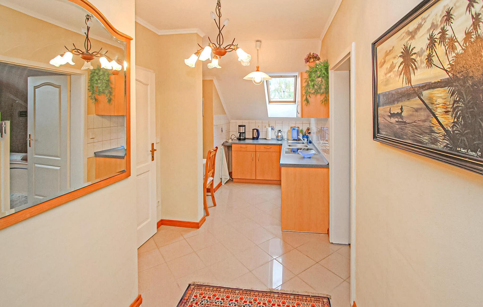 Ferielejligheden ligger sammen med to andre ferielejligheder på en velholdt, 3000 kvadratmeter stor bolig- og naturejendom direkte ved forbindelseskanalen mellem Ellenbogensee og Pälitzseen. Travl skibstrafik i løbet af sæsonen giver mange interessante oplevelser blot ved at observere dem. Lejligheden har direkte adgang til kanalen. Svømning er muligt ved Großer Pälitzsee omkring 150 meter væk. Der kan benyttes flere udendørs siddepladser, et område til solbadning, en grill, et centralt vaskerum, et fællesrum, et cykelrum og en parkeringsplads. Ferielejligheden er beliggende separat på øverste etage i bolig- og sommerhuset. Den er indrettet med kombineret stue/soveværelse med polstrede møbler, dobbeltseng, TV, radio, køkken med el-komfur med ovn, køleskab med fryser, mikroovn, spiseplads og diverse køkkenmaskiner samt badeværelse med bruser og toilet. . Der er også centralvarme og en barneseng, der kan tilføjes. Følgende ydelser er inkluderet i den samlede pris: slutrengøring, sengelinned, håndklæder, vand og energi. Betales på stedet: spaskat (april-oktober). Strasen er et feriested midt i Mecklenburgs lille sølandskab, cirka 8 km syd for Wesenberg. Dette område imponerer med sin originalitet og sine mange søer, som er forbundet med hinanden ved at forbinde kanaler, hvoraf nogle er rustikke. Især vandvandrere, vandsportsentusiaster og lystfiskere finder de bedste forhold her. Takket være det veludbyggede netværk af cykelstier får cyklisterne også noget for pengene. Restaurant, kiosk, båd- og cykeludlejning i byen.