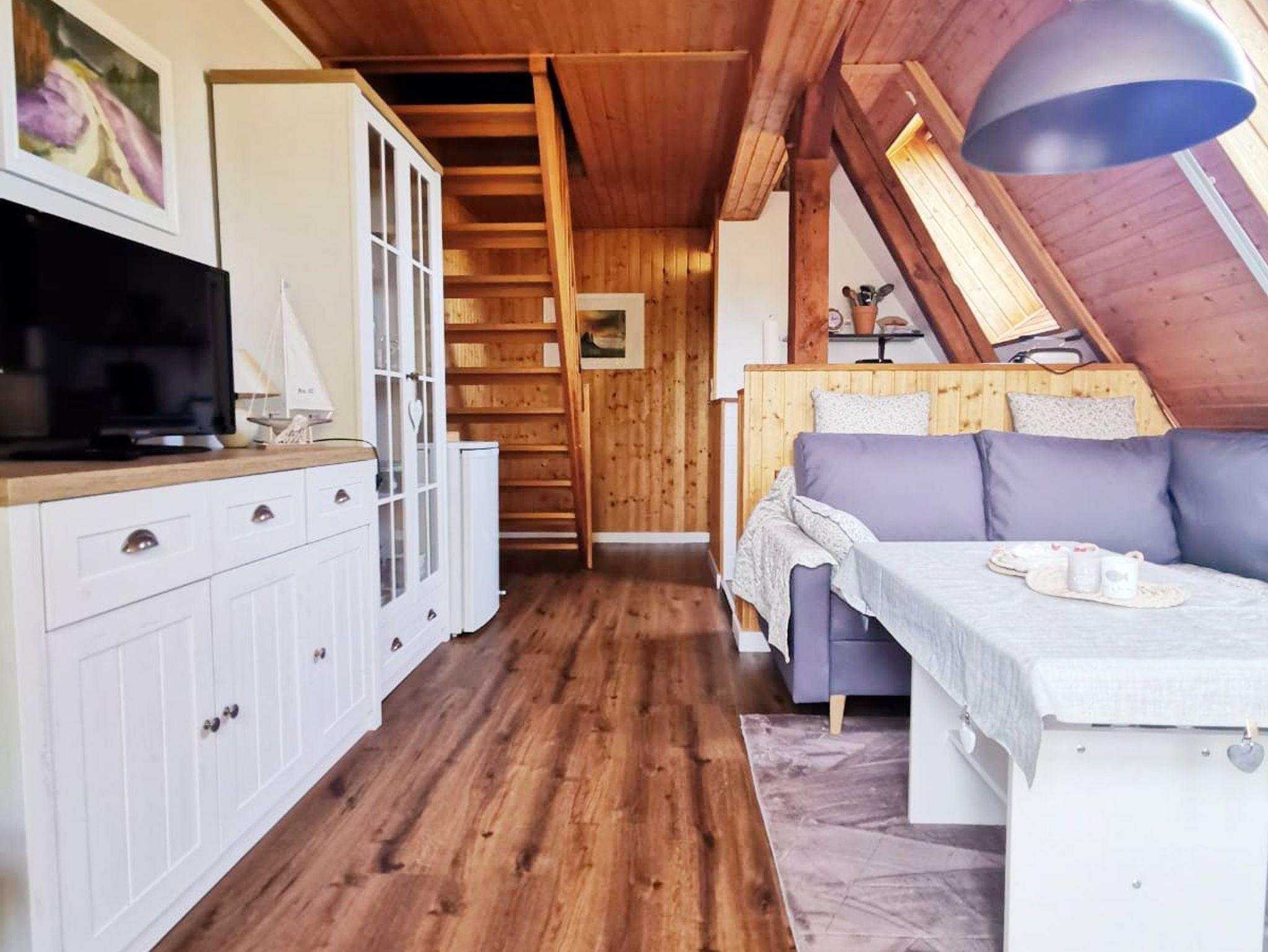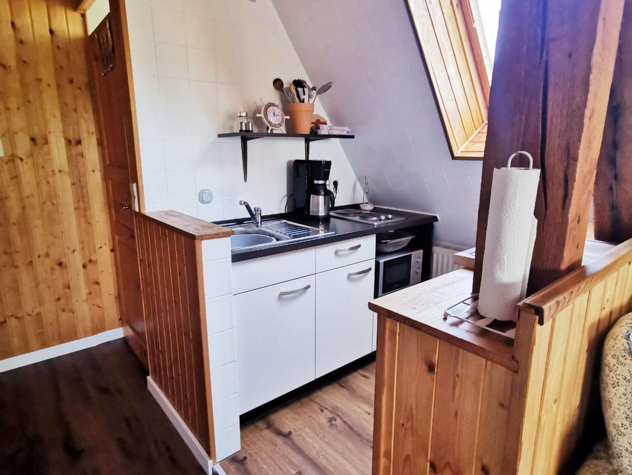Die gemütliche Ferienwohnung Mond erstreckt sich über 2 Etagen und ist mit einem kombinierten Wohn-Essbereich, einer kleinen Küche sowie ein Bad mit Dusche und WC im unteren Teil sowie 2 separaten Schlafräumen (1x Doppelbett, 1x zwei getrennt stehende Einzelbetten) im oberen Teil ausgestattet.