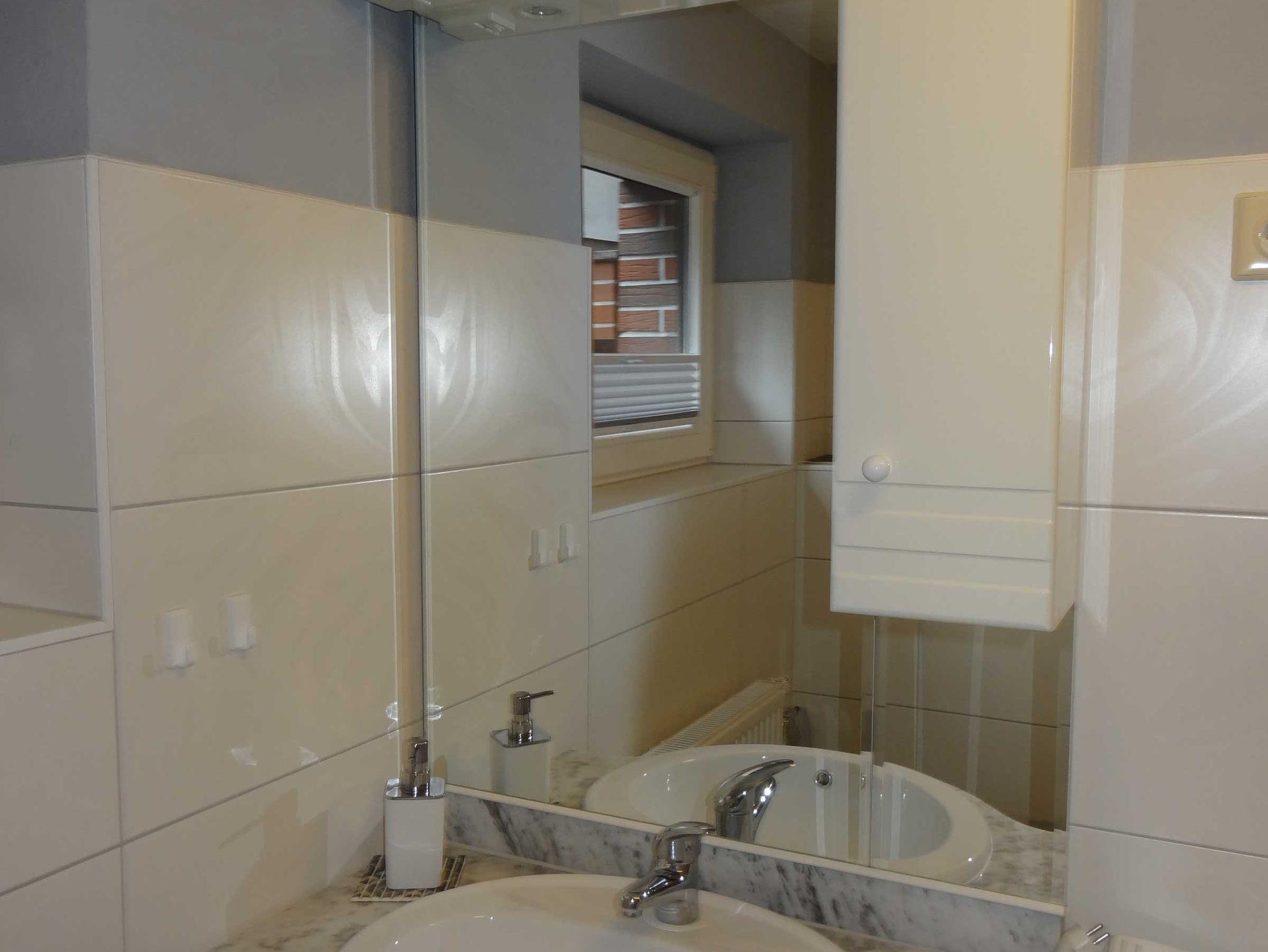 Die Ferienwohnung befindet sich im Haus des Vermieters im Souterrain mit separatem Eingang. Die kleine Einbauküche ist mit einem 4-Platten-Herd, einem Backofen, Geschirrspüler, Kühlschrank mit Tiefkühlfach, Wasserkocher, Toaster, Eierkocher und Kaffeemaschine ausgestattet.