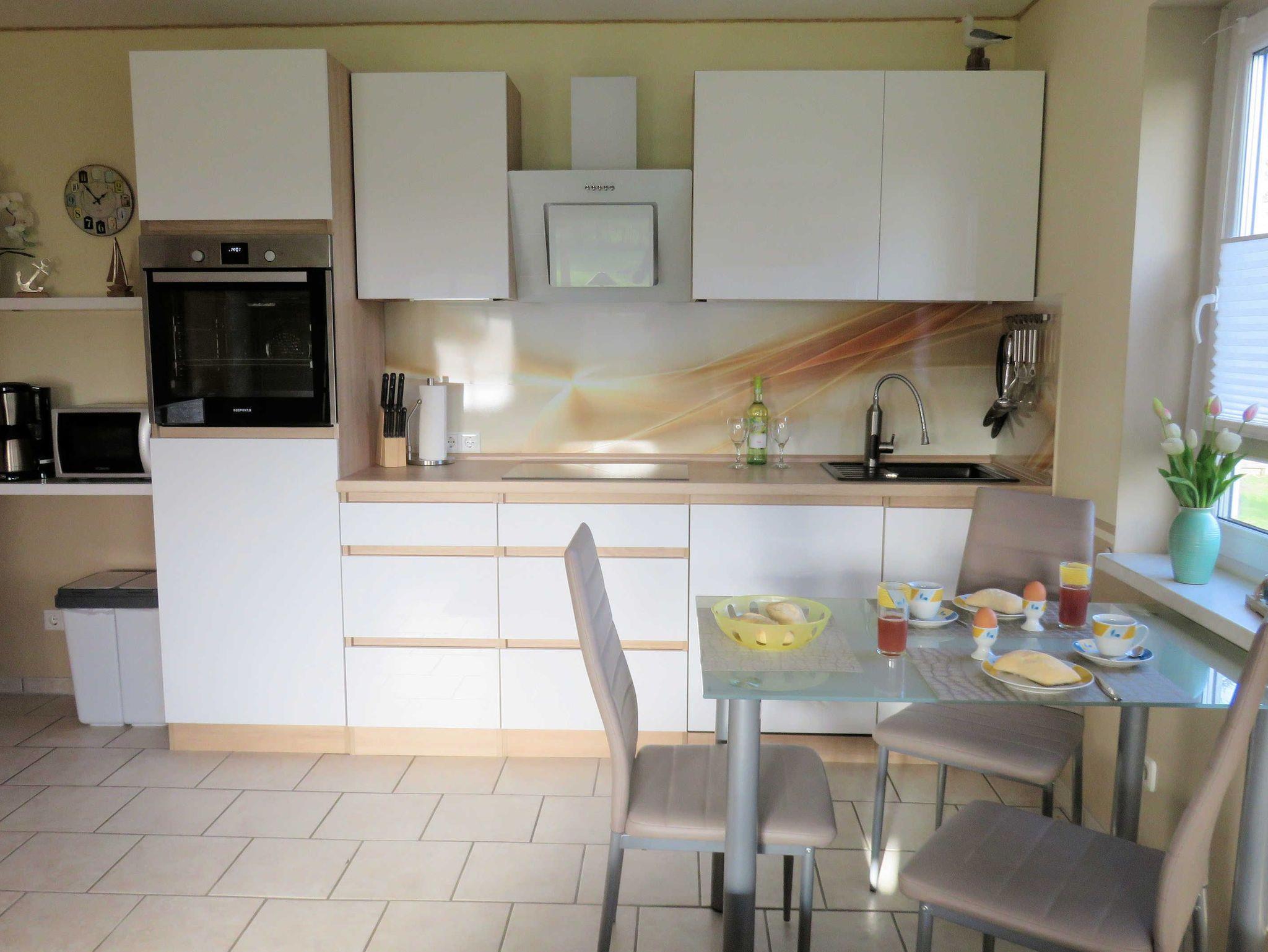 • die Küche ist komplett eingerichtet mit Ceranfeld, Backofen, Geschirrspüler, Mikrowelle, Kühlschrank mit 3*** Gefrierfach, Kaffeemaschine, Toaster und Wasserkocher