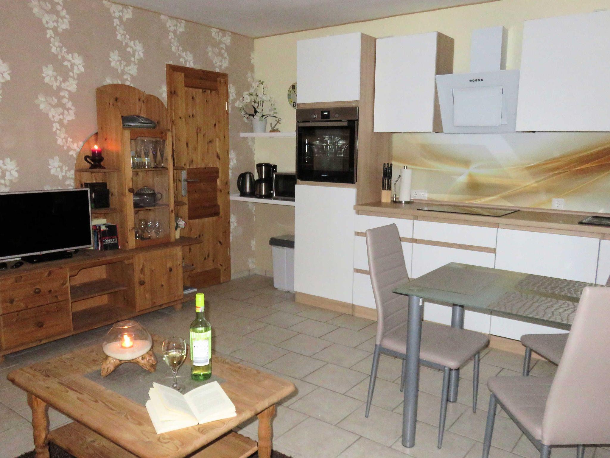 • Wohnraum mit Sat-TV, DVD-Player, Radio und offener Küche