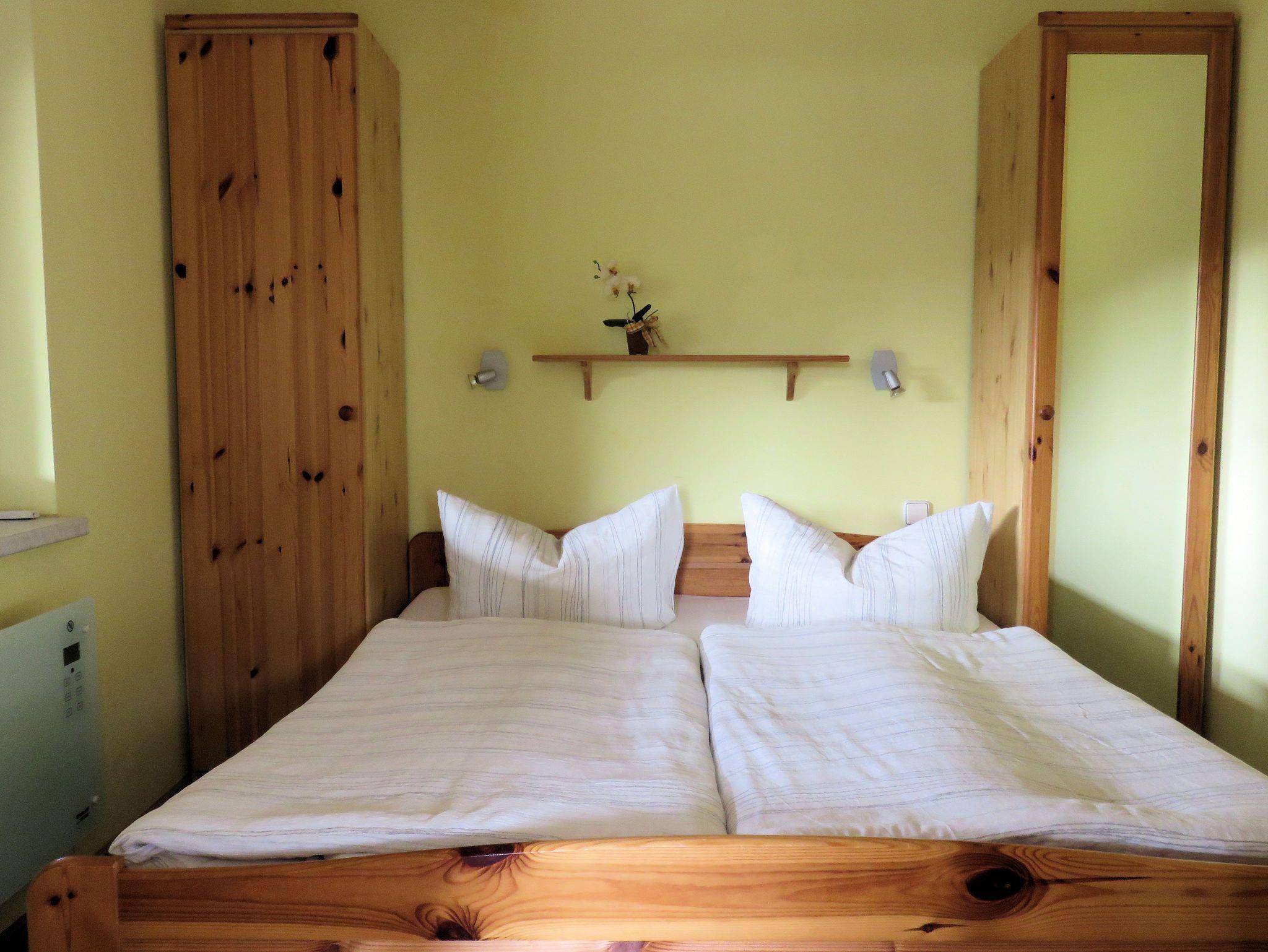 • Schlafraum mit Doppelbett, 1 Aufbettung im Wohnraum möglich