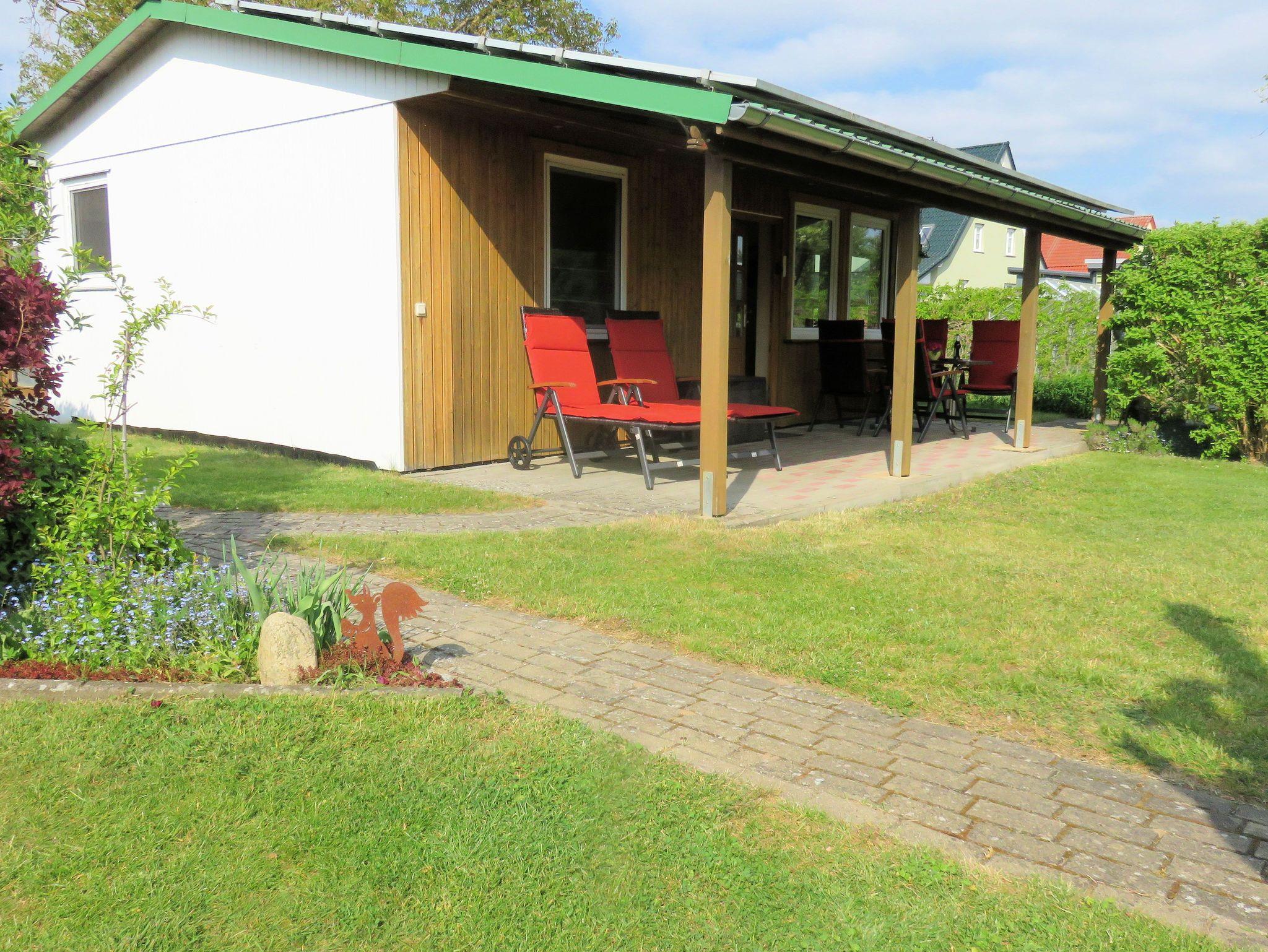 Der Bungalow mit angrenzendem Doppelcarport (einer davon für Ihr Auto und Ihre mitgebrachten oder geliehenen Fahrräder) hat eine Wohnfläche von ca. 35 qm. Er ist freundlich eingerichtet und verfügt über eine Fußbodenheizung, so dass Sie sich zu jeder Jahreszeit so richtig wohlfühlen können. Der Wohnraum mit Sat-TV, Blu-Ray Player und Radio geht offen in die Küche über. Diese ist mit einer Küchenzeile mit Ceranfeld, Backofen, Geschirrspüler, Kühlschrank mit 3* Gefrierfach, Mikrowelle, Kaffeemaschine, Wasserkocher, Toaster usw. voll eingerichtet. Im Schlafraum befindet sich ein Doppelbett. Eine Aufbettung ist auf der Schlafcouch im Wohnraum möglich.