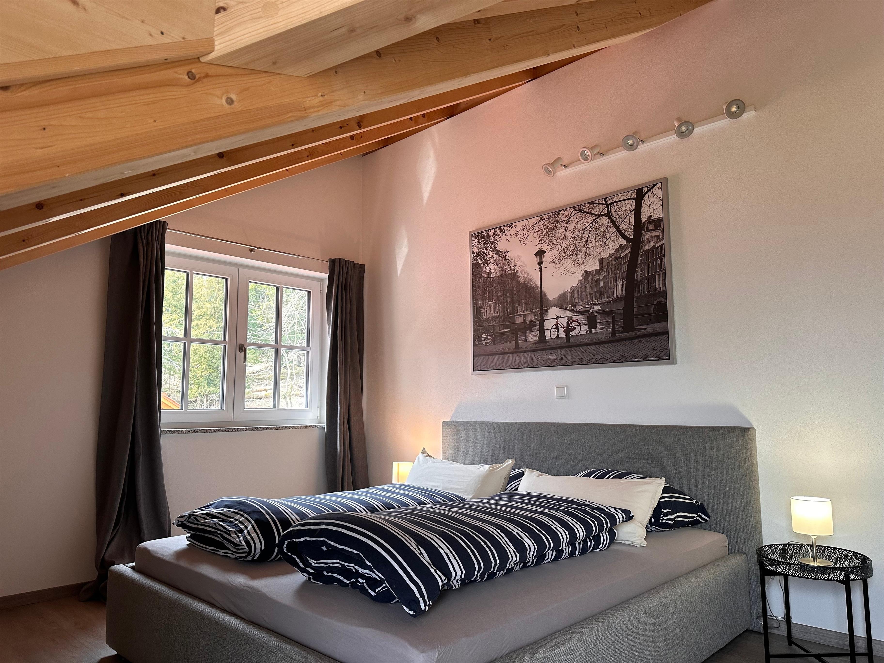 Zwei Schlafräume mit neuem Polster-Doppelbett 180 cm x 200 cm im Dachgeschoß