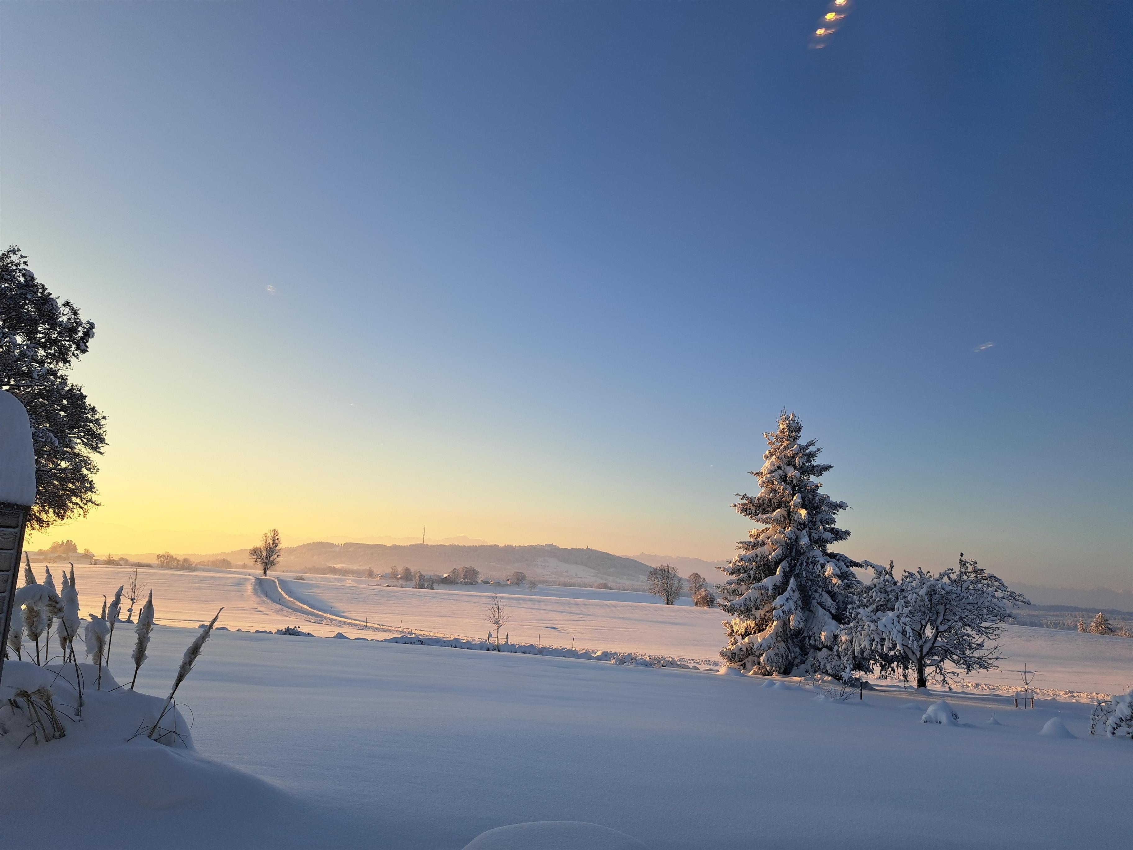 Im gästeeigenem Garten mit überdachtem Freisitz, lässt sich der Tag wundervoll beginnen oder nach einem erlebnisreichen Tag gemütlich ausklingen. Bei guter Sicht lässt der Blick auf die Alpen einem das Herz höher schlagen.