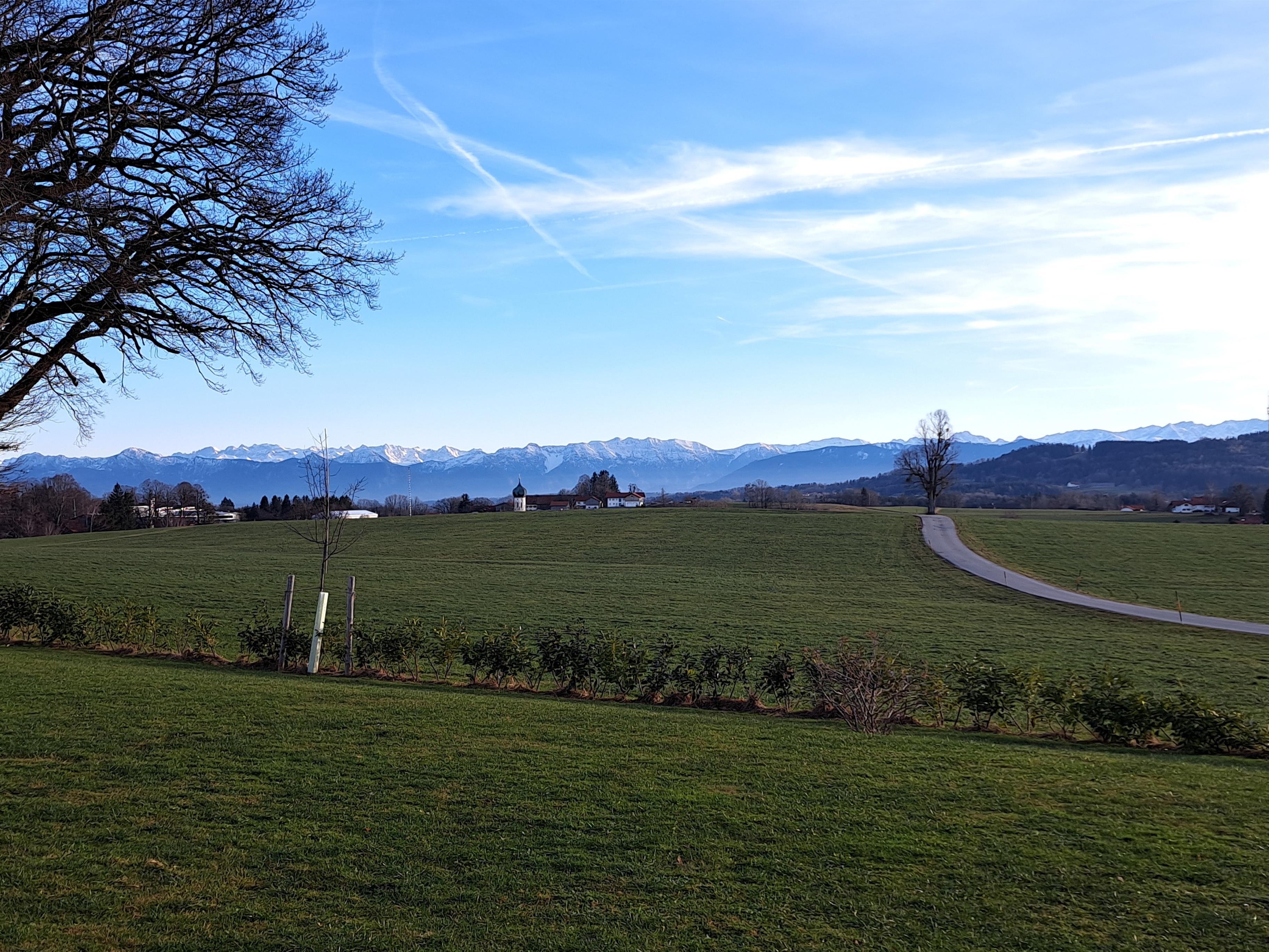 Hier kräht morgens noch der Hahn, während vom gästeeigenen Garten aus die Sonne den Blick auf die Alpen freigibt. Von hier aus gelangt man in weniger als einer Autostunde zu allen bekannten Sehenswürdigkeiten des Bayrischen Oberlandes.