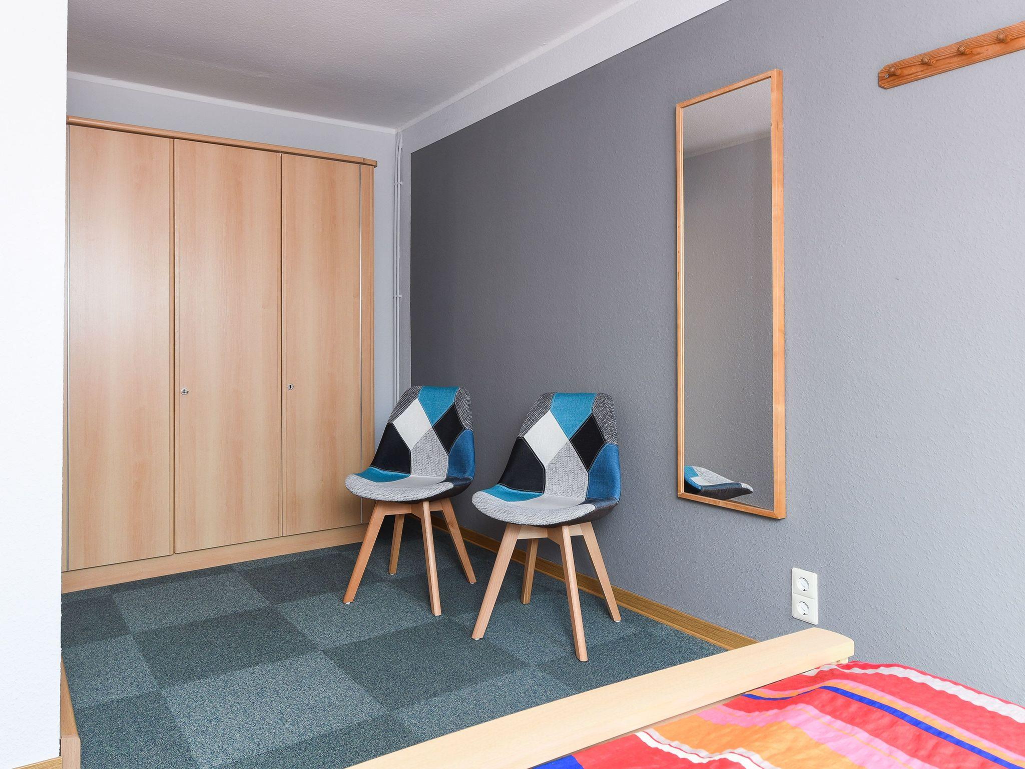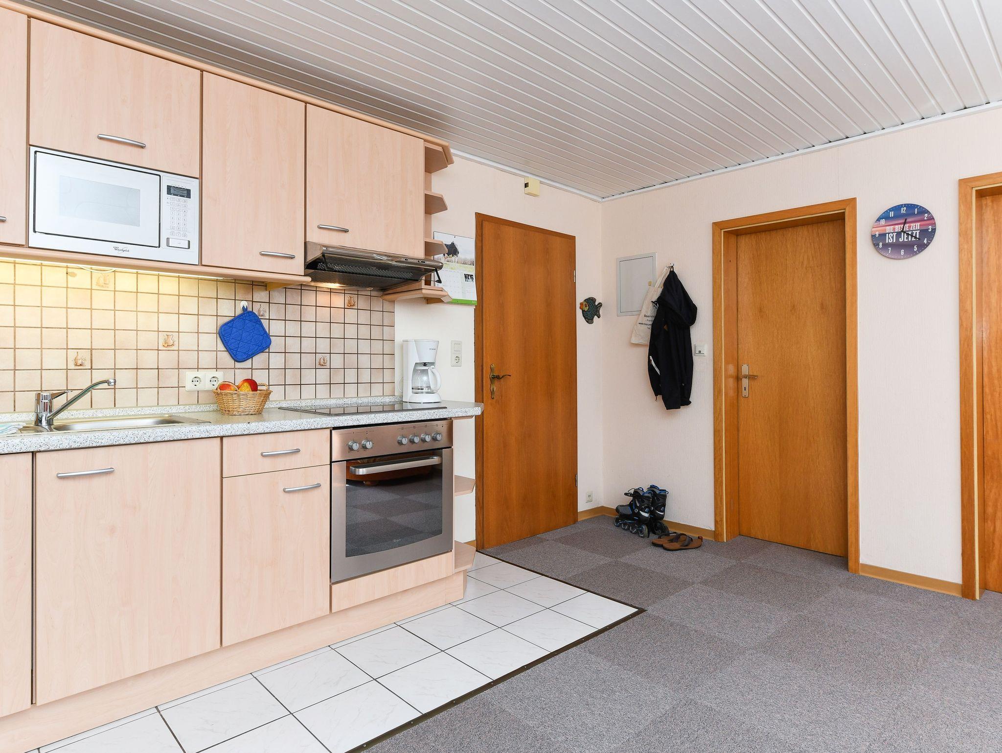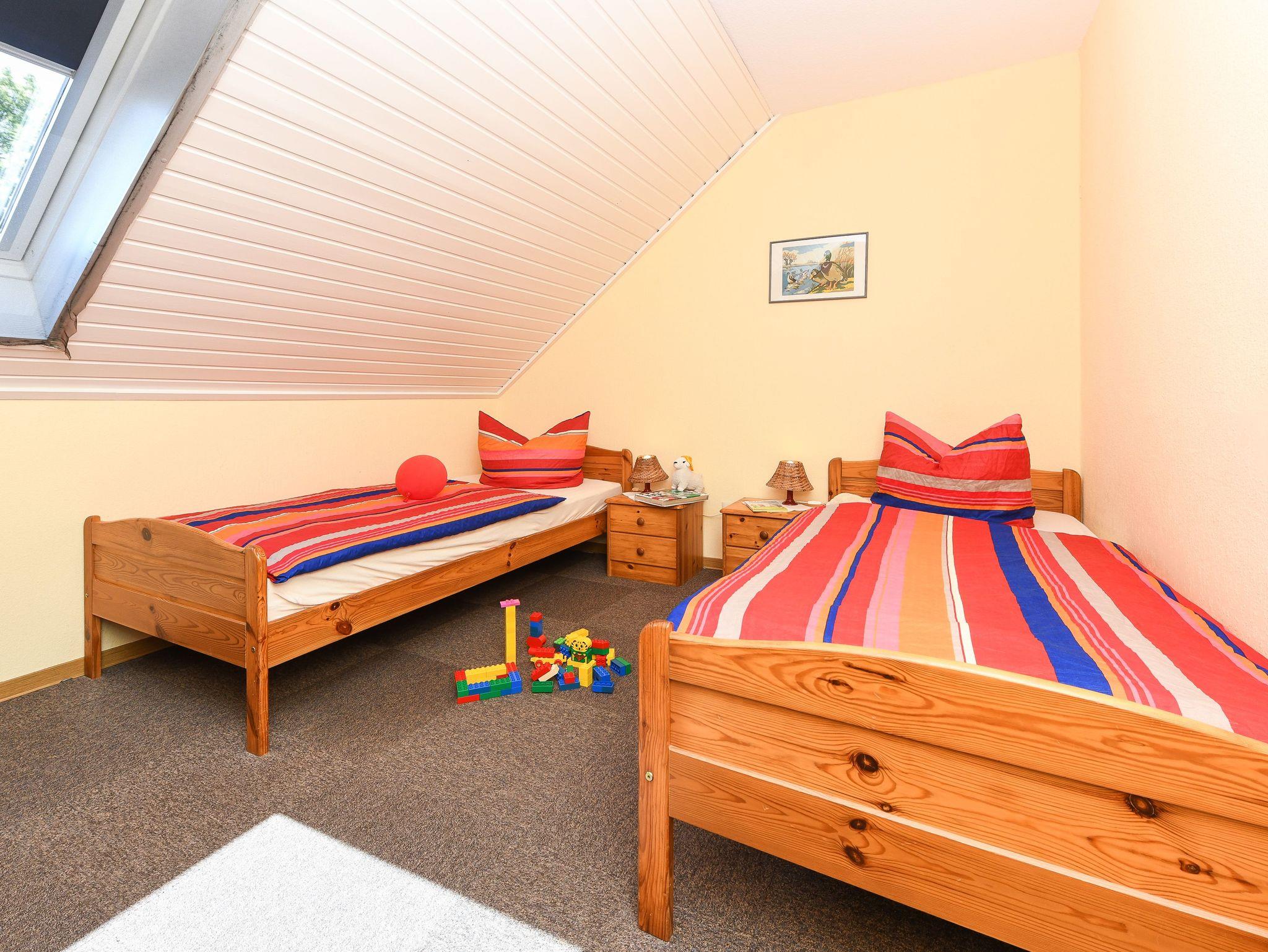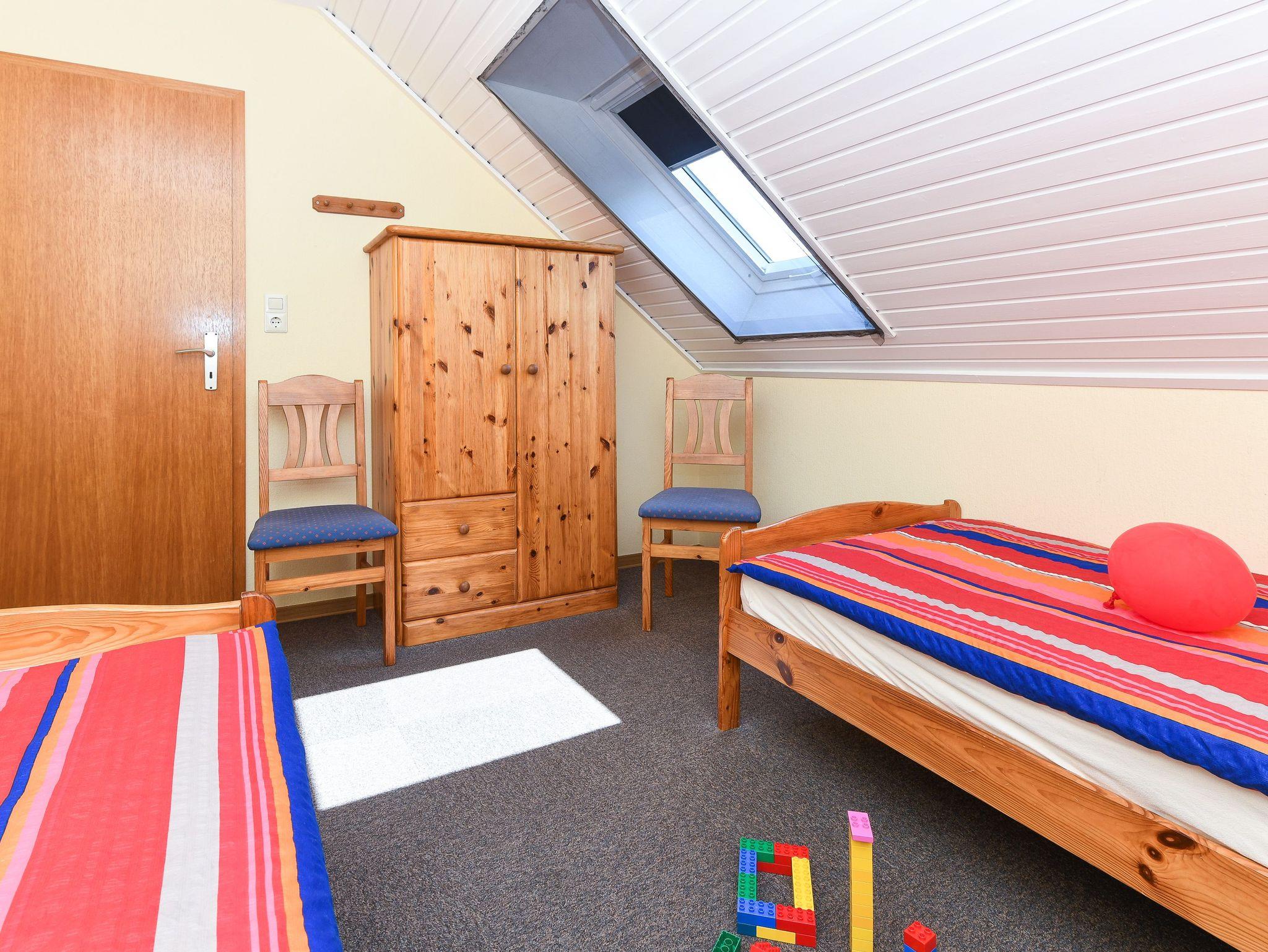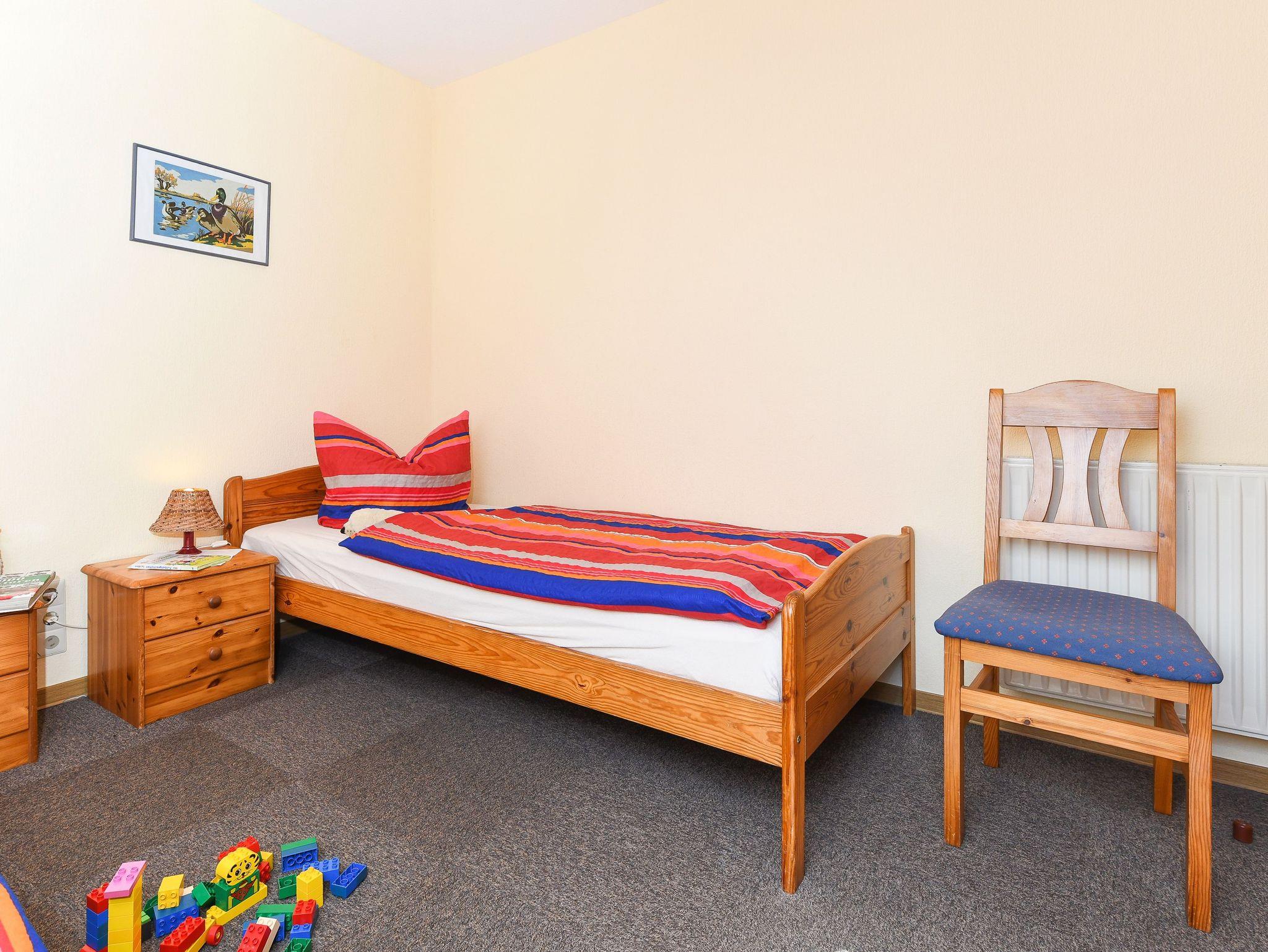 Größe ca. 60 Quadratmeter, Wohnraum mit integrierter Küche, Schlafzimmer, zweites separates Schlafzimmer/Kinderzimmer, Badezimmer mit Dusche, Waschtisch und WC, Obergeschoss, optimal für 2 bis 4 Personen und zusätzlich ein Kleinkind.