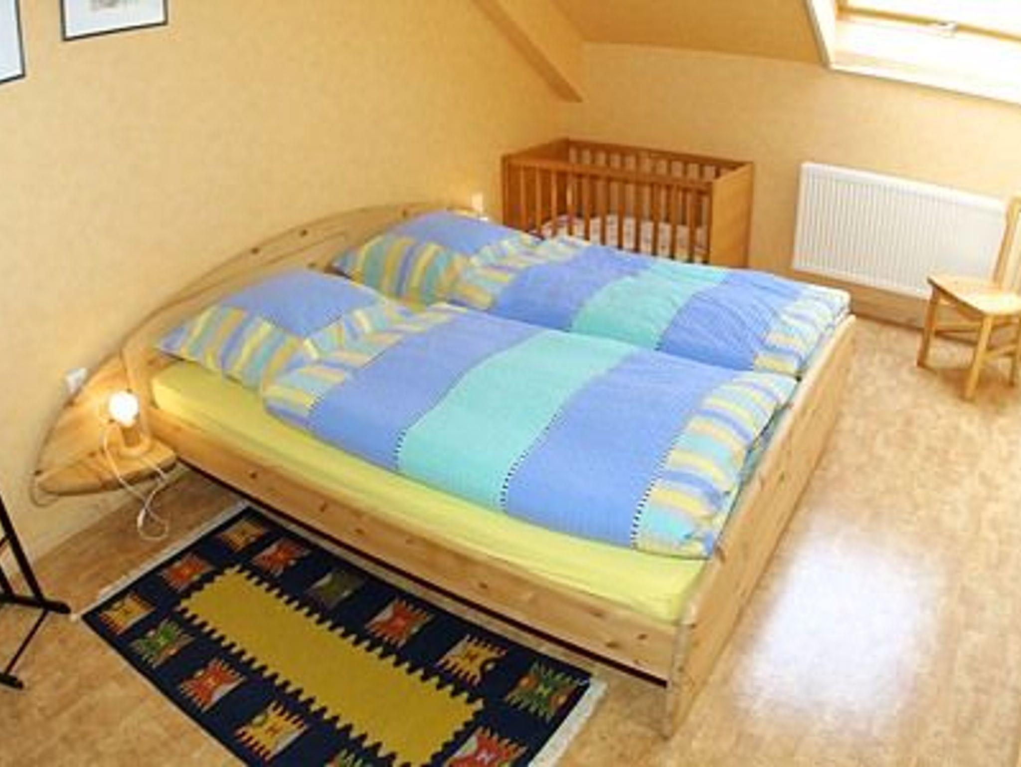 Größe ca. 73 Quadratmeter, Wohnraum mit integrierter Küche, Schlafzimmer, zweites separates Schlafzimmer/Kinderzimmer, Badezimmer mit Dusche, Waschtisch und WC, Obergeschoss, optimal für 2 bis 4 Personen.