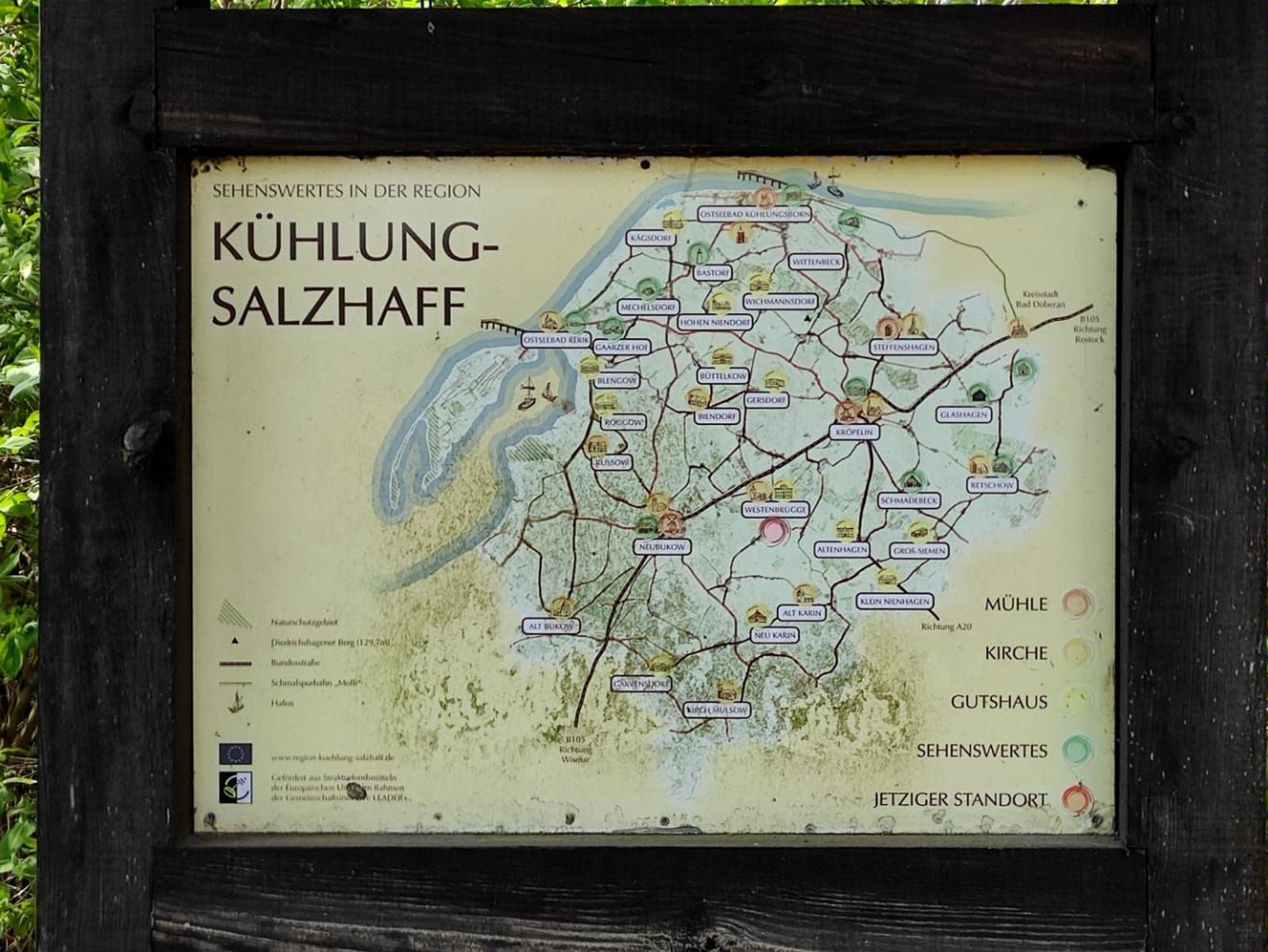 Ostseestrand: Zum flachen Naturstrand der Salzhaffbucht 12 km. Zum breiten Badesandstrand der Ostseebäder Rerik 15 km und Kühlungsborn 21 km.