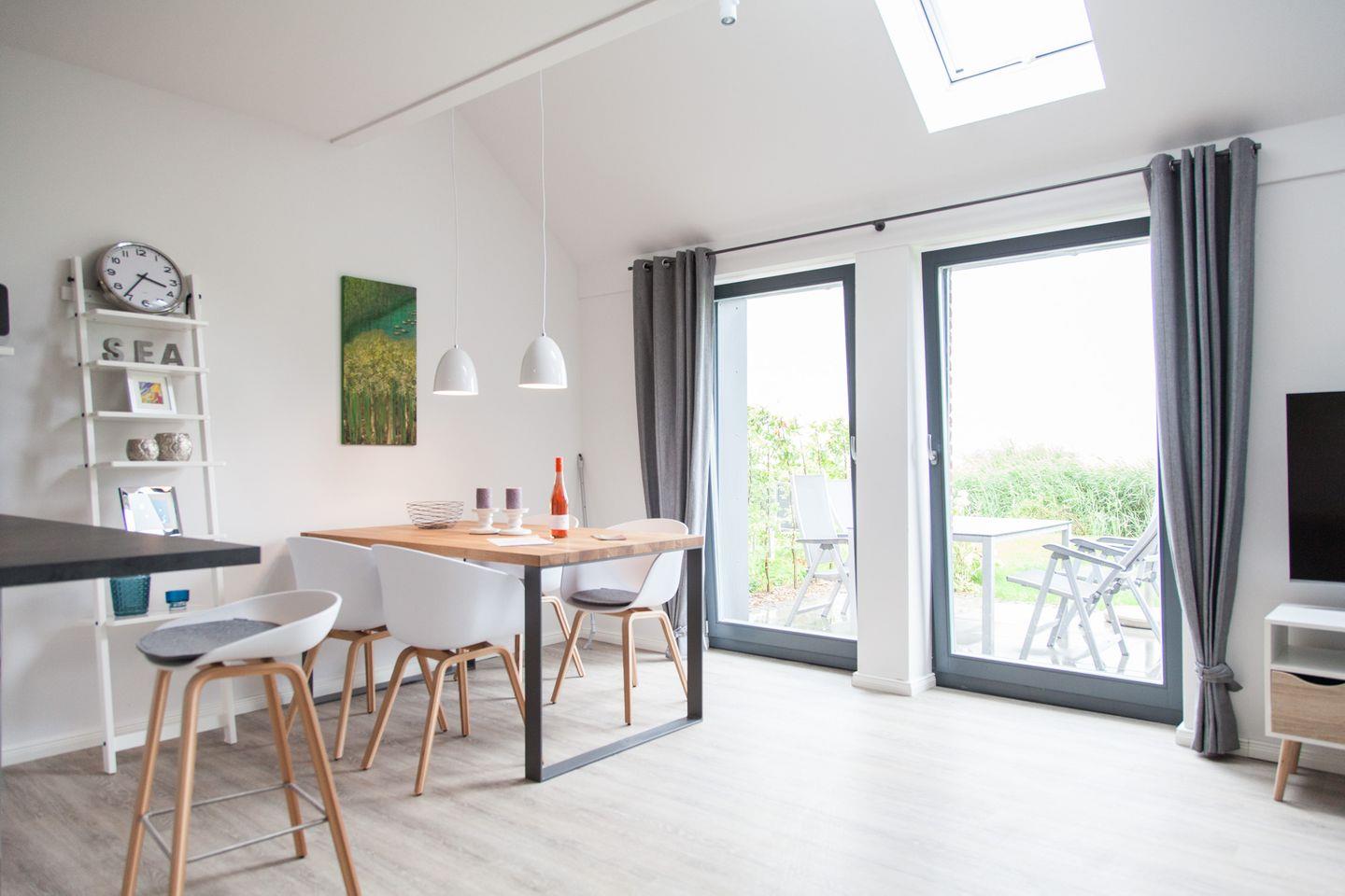 Die Lage ist ein weiterer Vorteil, in unmittelbarer Nähe finden Sie den schönen Sandstrand, der nur 1000 Meter entfernt ist, sowie Einkaufsmöglichkeiten und Restaurants, die fußläufig innerhalb von 1500 Metern erreichbar sind. Die Umgebung bietet sich zudem für zahlreiche Outdoor-Aktivitäten an, sei es Radfahren, Spaziergänge am Deich oder einfach nur die Seele baumeln lassen.