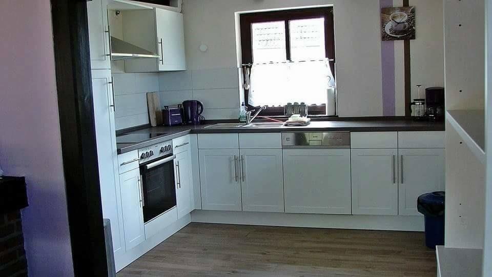 In unserem Haus befinden sich 3 Schlafzimmer, ein großzügiger Wohnbereich mit offener Küche. Sichtbare Balken in der ganzen unteren Etage verleihen dem Haus dem Charme des Reethauses. In dem Wohnbereich befindet sich eine Couch. Von dem großem Esstisch schauen Sie direkt in den Garten.Ein Flachbild Fernsehen verschönern die Abendstunden. Das Badezimmer ist mit einer großen Dusche und WC ausgestattet . Ein kleines Gäste WC gehört ebenfalls zur Ausstattung. Ein Schlafzimmer mit einem großen Doppelbett befindet sich im Erdgeschoss, ebenfalls mit einem Fernseher.