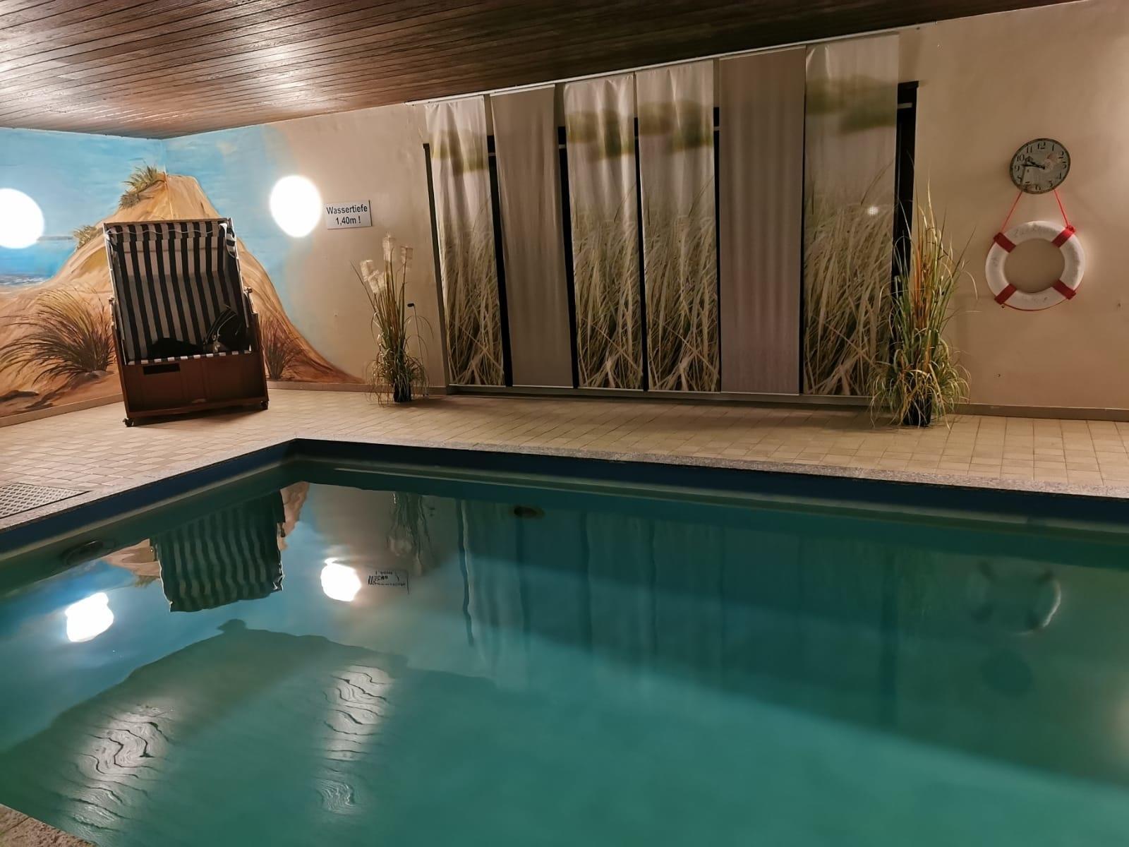 In unserem Schwimmbad können Sie so richtig entspannen.In unserer Schwimmhalle stehen Ihnen 2 Strandkörbe zur Verfügung.