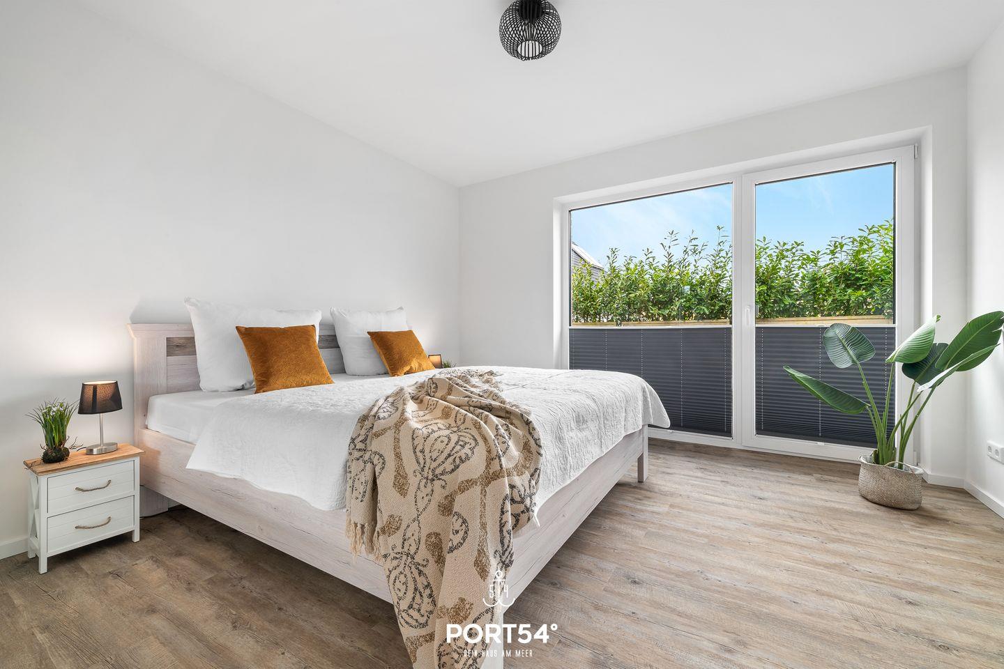 In gehobener und exklusiver Holzständerwerk-Bauweise erwartet Sie die im Erdgeschoss gelegene Ferienwohnung "Küste 2" auf etwa 64m². Der lichtdurchflutete Wohnbereich ist mit einer gemütlichen Wohnlandschaft inklusive Schlaffunktion (140 x 200cm) und einem Flachbildfernseher ausgestattet. Die angrenzende Küche ist offen gestaltet und bietet alle Annehmlichkeiten, die für einen geselligen Kochabend benötigt werden. Am Esstisch mit gemütlichen Stühlen können Sie bequem gemeinsam essen oder einen Spieleabend verbringen. Bodentiefe Fenster ermöglichen den Ausblick in die Natur. Ebenfalls ist von hier aus der Zutritt zur vollmöblierten Terrasse möglich. Im Schlafzimmer erwarten Sie ein großes Doppelbett (180x200cm), sowie Verdunklungsmöglichkeiten für die Fenster. Das Badezimmer ist mit einer ebenerdigen Dusche, einem WC sowie einem Waschbecken ausgestattet. Gerne können auch Fahrräder im Fahrradschuppen untergestellt werden.