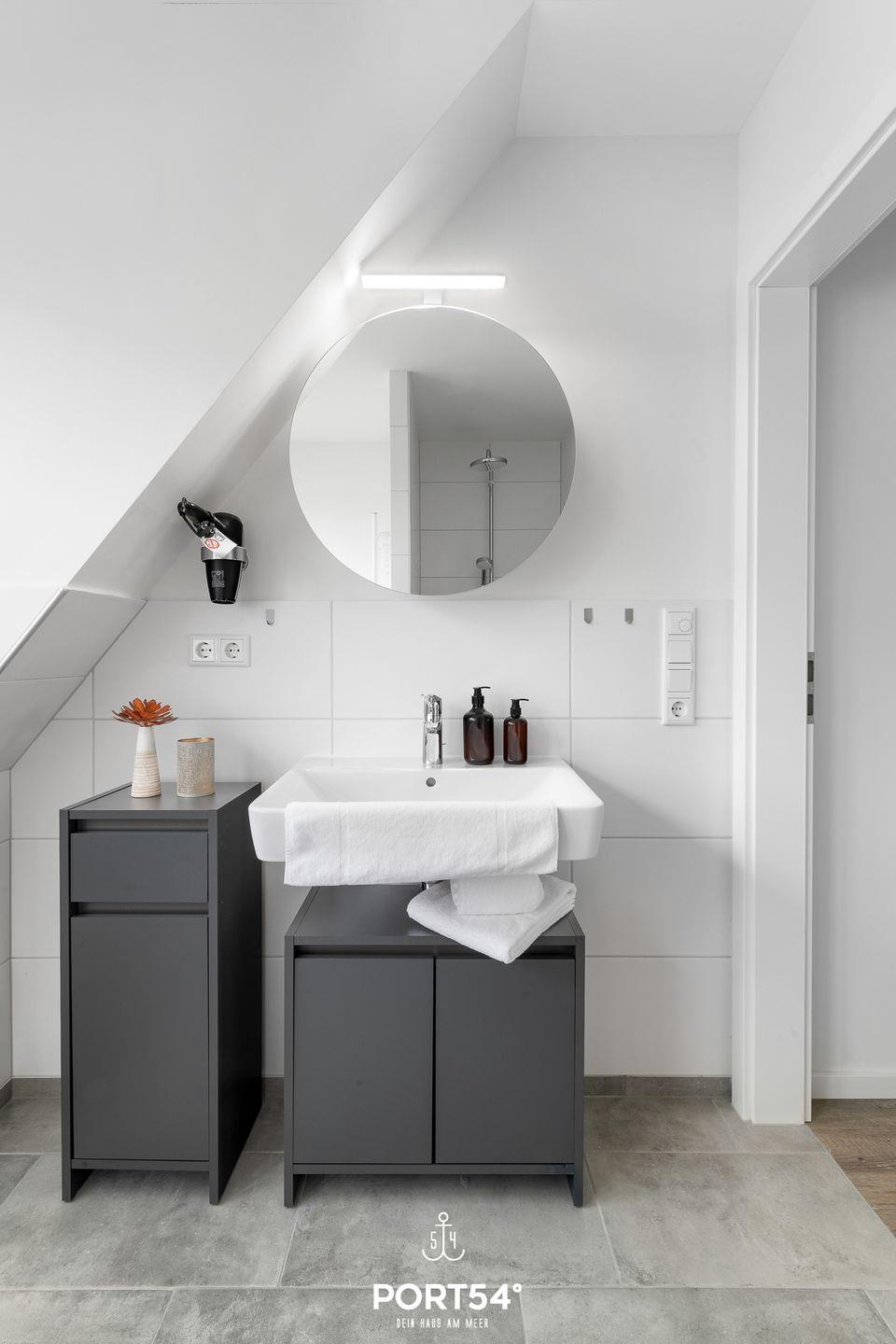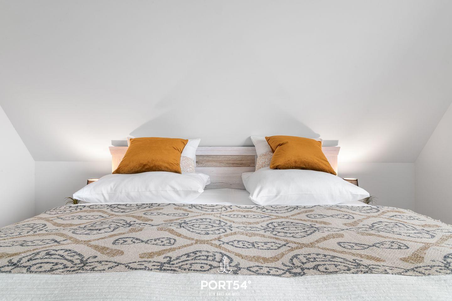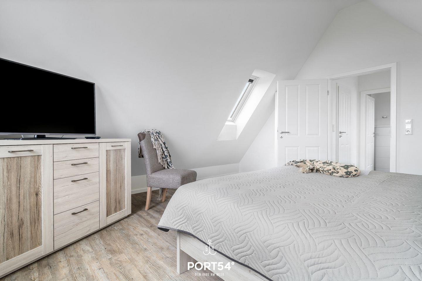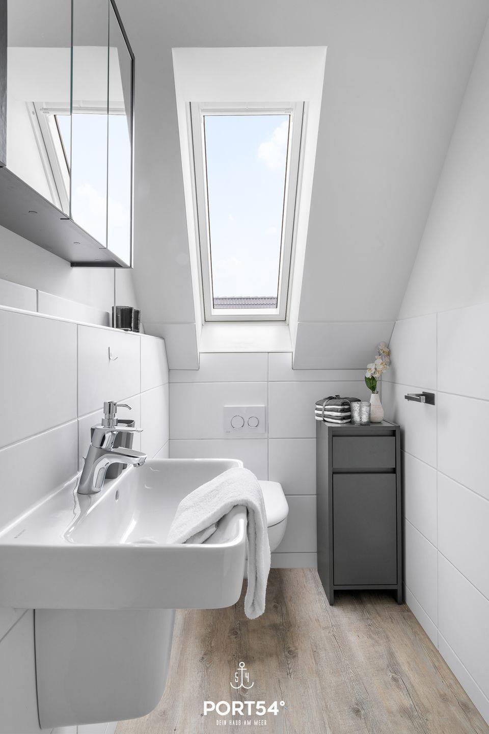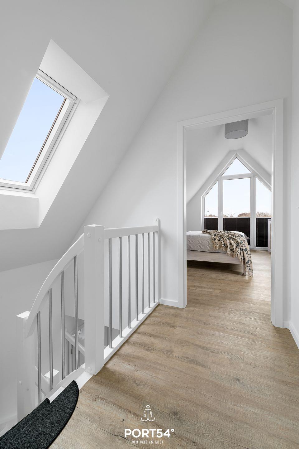 werden. Am Esstisch mit gemütlichen Stühlen können Sie bequem gemeinsam essen oder einen Spieleabend verbringen. Bodentiefe Fenster ermöglichen den Ausblick in die Natur. Von hier aus gelangen Sie zum vollmöblierten Balkon. In einem der beiden Schlafzimmer erwartet Sie ein großes Doppelbett (180x200cm), sowie Verdunklungsmöglichkeiten für die Fenster. Das andere Schlafzimmer befindet sich ich im ausgebauten Spitzboden und bietet ein Doppelbett (160x200cm), sowie einem Flachbild TV und Verdunkelungsmöglichkeiten für erholsame Nächte. Das Badezimmer ist mit einer ebenerdigen Dusche, einem WC sowie einem Waschbecken ausgestattet. Im Spitzboden befindet sich ein Gäste Bad mit WC und Waschbecken. Zudem können auch gerne Fahrräder im Fahrradschuppen untergestellt werden.