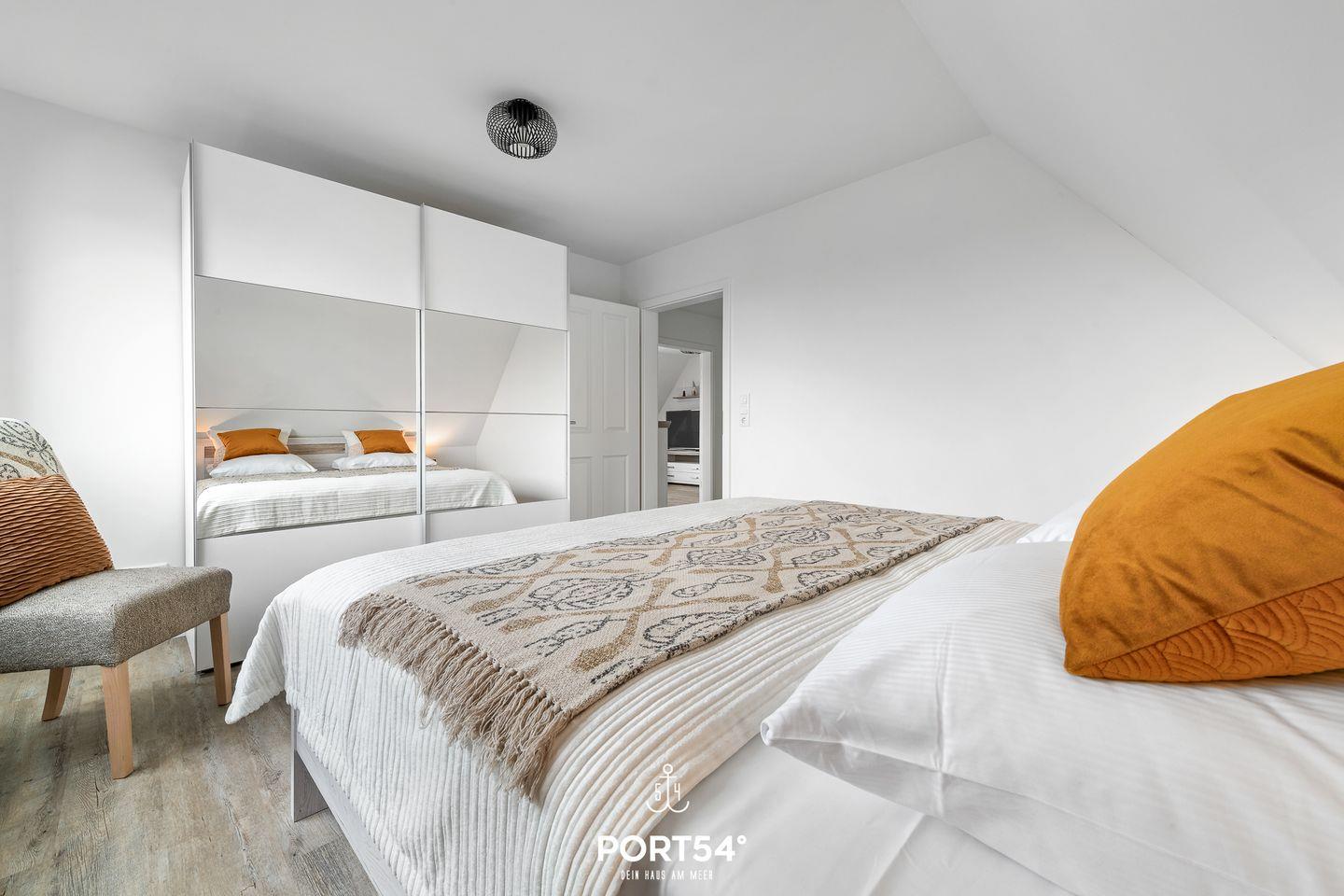 Die im OG gelegene Ferienwohnung "Küste 3" ist für 6 Personen geeignet. Der Wohnbereich ist mit einem Schlafsofa und einem TV ausgestattet. Die Küche ist offen gestaltet und voll ausgestattet. Bodentiefe Fenster ermöglichen den Ausblick in die Natur und den Zutritt zum Balkon. Die beiden Schlafzimmer erwarten Sie mit je einem großes Doppelbett (180x200cm), sowie Verdunkelungsmöglichkeiten. Das Badezimmer ist mit einer ebenerdigen Dusche ausgestattet. Ein Gäste-WC ist vorhanden.