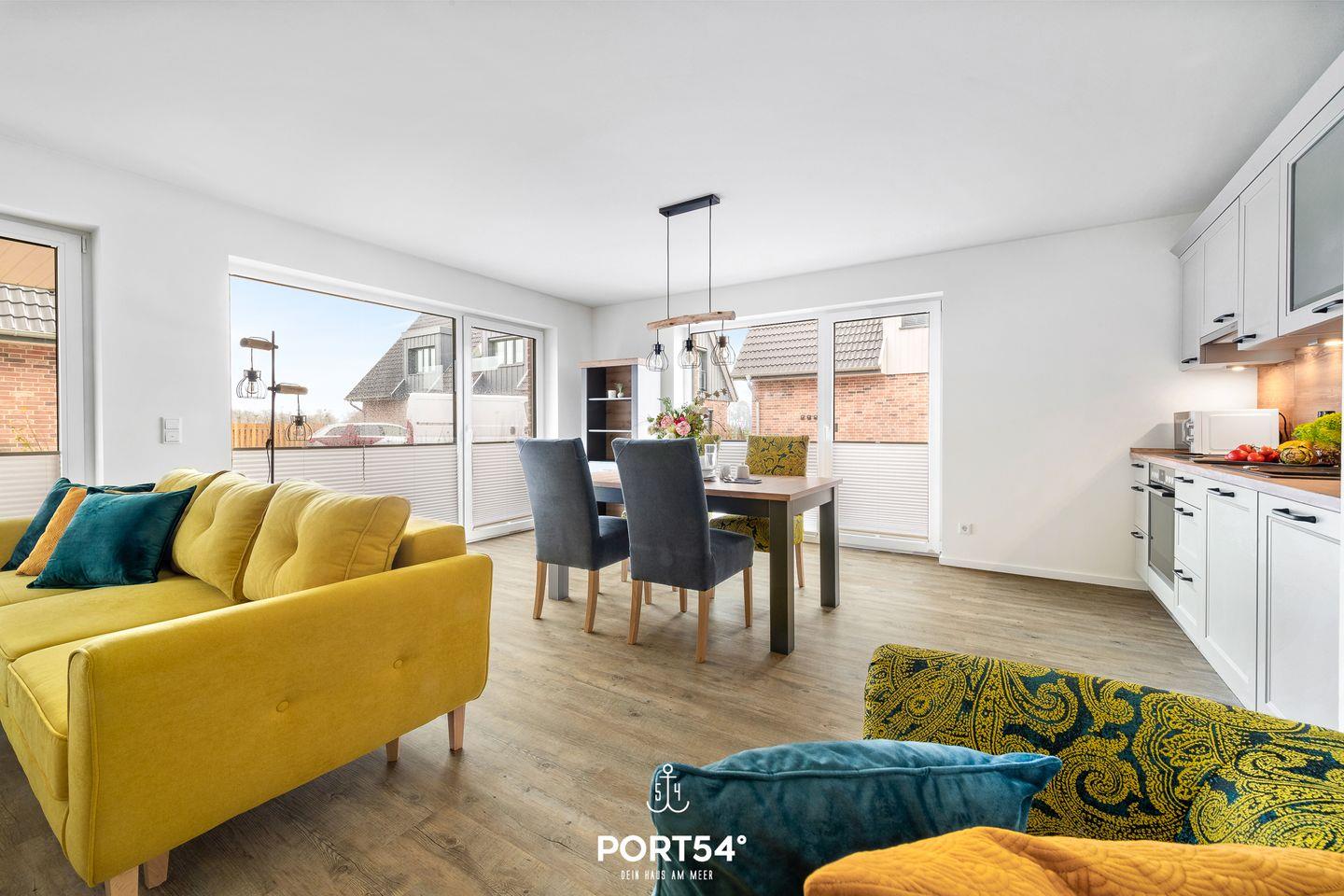 Die im EG gelegene Ferienwohnung "Küste 5" ist für 4 Personen geeignet. Der Wohnbereich verfügt über ein Schlafsofa und ein Smart-TV. Die Küche ist offen gestaltet und voll ausgestattet. Bodentiefe Fenster lassen viel Licht herein und ermöglichen den Zutritt zur vollmöblierten Terrasse. Im Schlafzimmer erwarten Sie ein großes Doppelbett (180x200cm), ein TV sowie verdunkelbare Fenster. Das Badezimmer ist mit einer ebenerdigen Dusche ausgestattet.